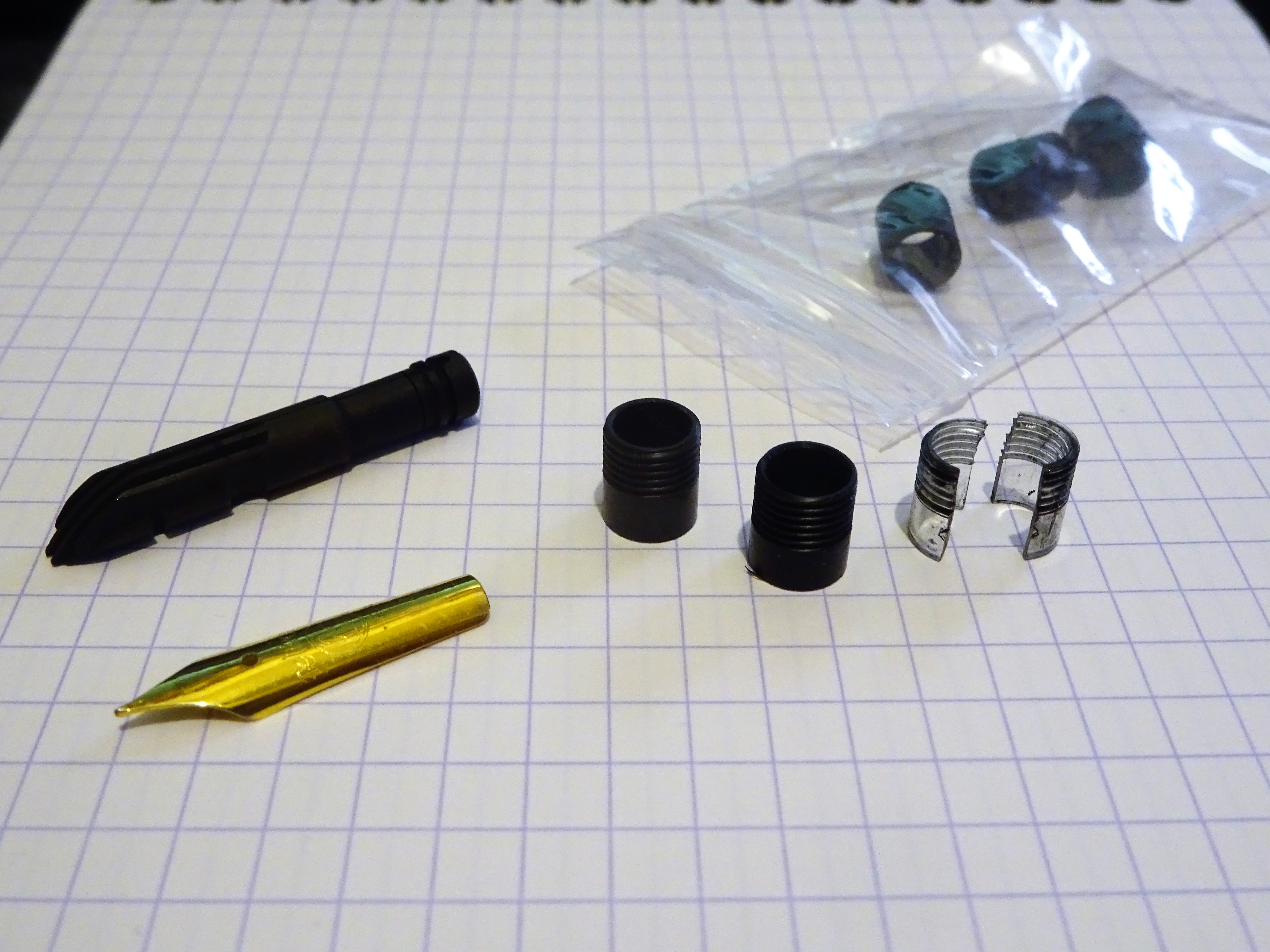 Seguendo il consiglio di ricart ho acquistato online il collarino di ricambio (in realtà anche qualcuno in più, così ammortizzo i costi di spedizione e me ne tengo un po' di scorta). Il montaggio del collarino è apparentemente facile; in realtà la cosa complicata è capire quale può essere l'altezza del pennino rispetto all'alimentatore e poi mantenere lo stesso pennino correttamente allineato durante la fase di incastro al di sotto del collarino. Anche perché bisogna prima montare il collarino sull'asta dell'alimentatore e poi infilarci la code del pennino sotto e nel frattempo ...si muove tutto!