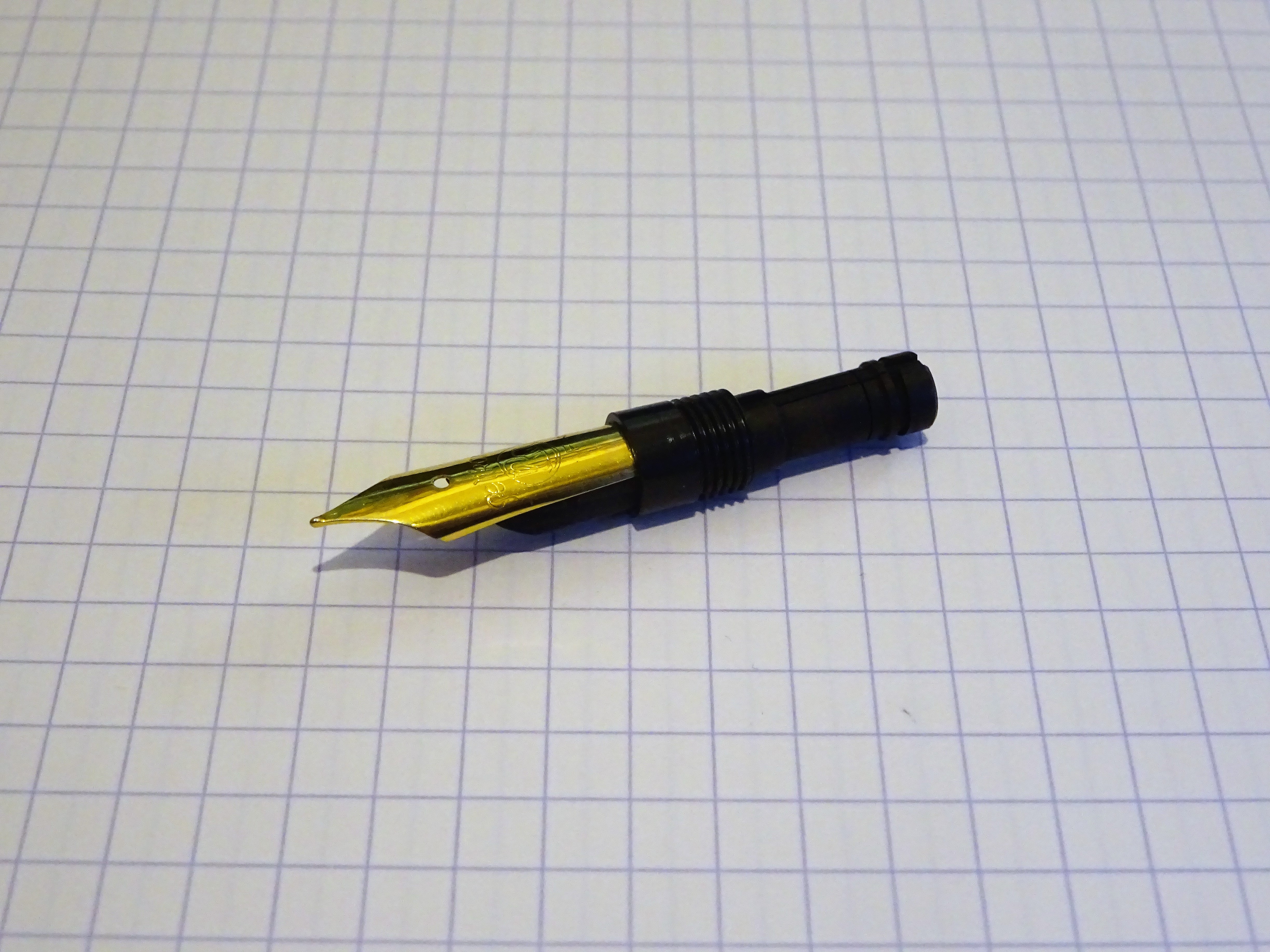 Per quanto riguarda il primo aspetto ho semplicemente appoggiato il pennino sull'alimentatore e l'ho posizionato in modo che la curva delle ali combaciasse con la curva dell'alimentatore (visto di profilo). Appoggiando il collarino all'esterno ho fissato mentalmente quale dovesse essere la sua posizione corretta lungo l'asse dell'alimentatore per assicurare la giusta altezza del pennino rispetto all'alimentatore.