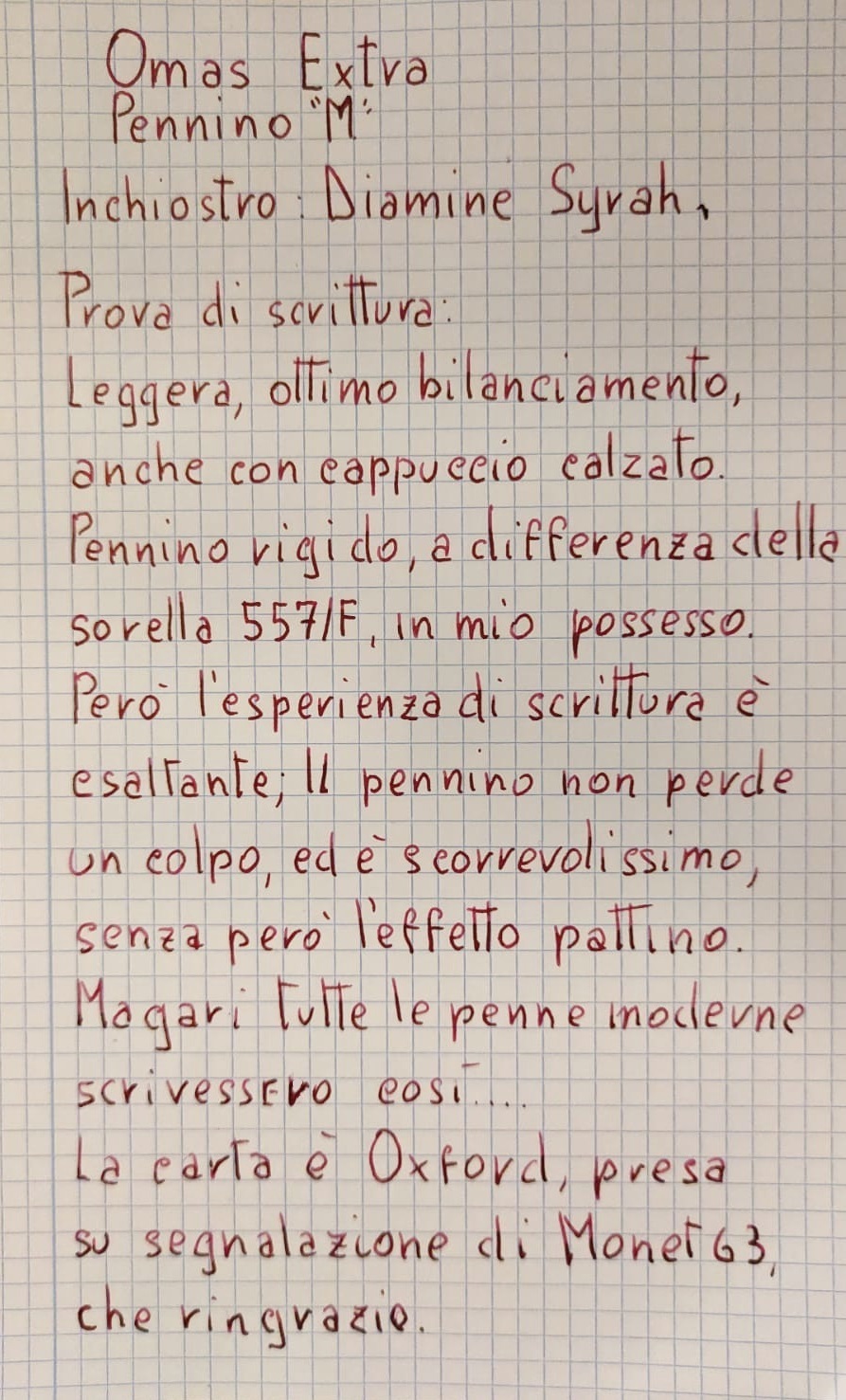 Dopo il bagnetto di rito, ho inchiostrato la Omas extra, presa recentemente: