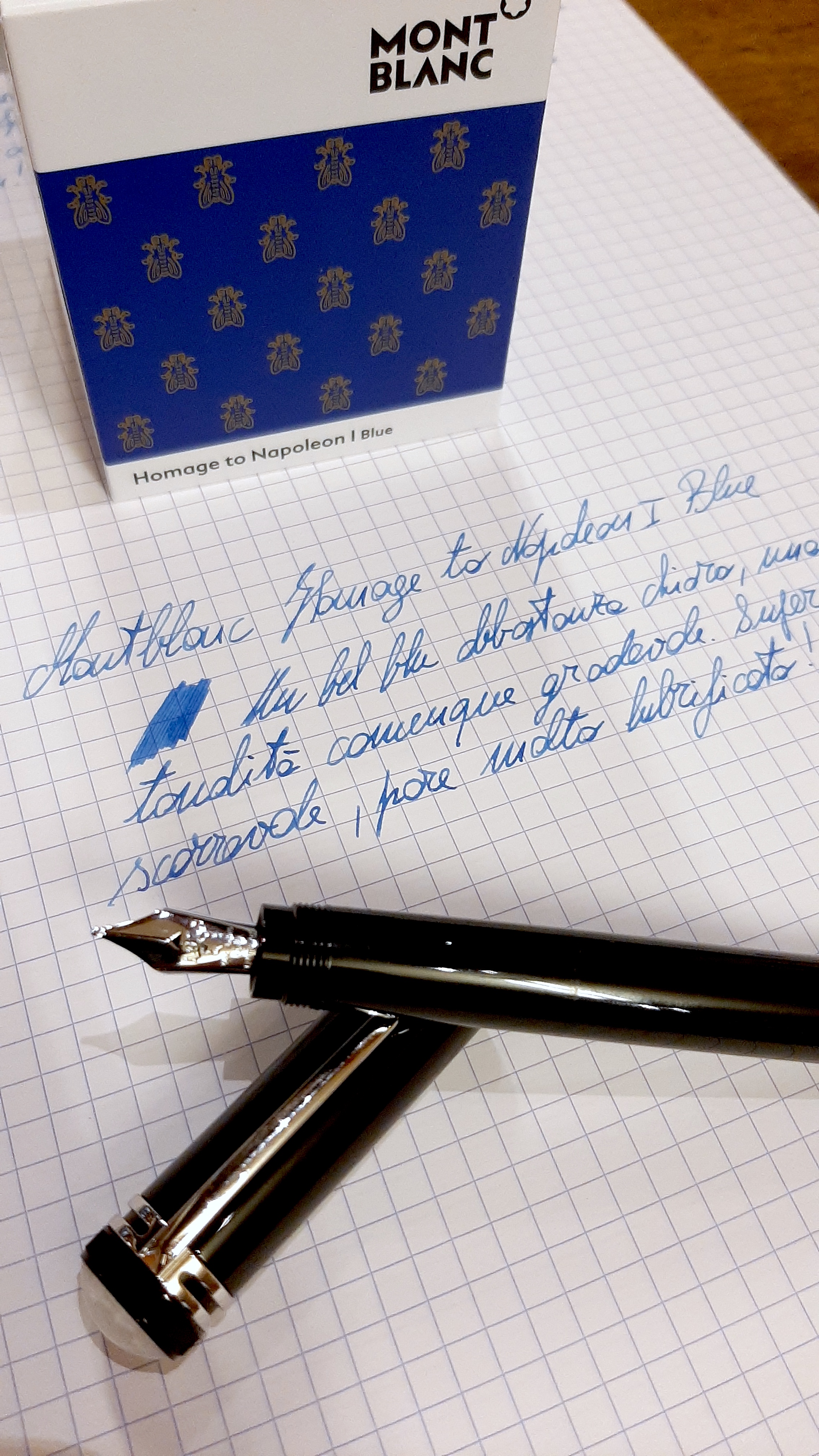 Ho ricevuto questo inchiostro come regalo, devo dire che come sempre gli inchiostri Montblanc si dimostrano all' altezza. È estremamente fluido, scorre molto bene con la mia Montblanc Heritage 1912 pennino medio, ha un bel colore tra il turchese e il blu. Qualcosa di diverso dal solito, dopo il primo impatto mi piace. Come sempre lascia la penna pulita in un attimo e non macchia. Bella anche la boccetta da 50 ml.