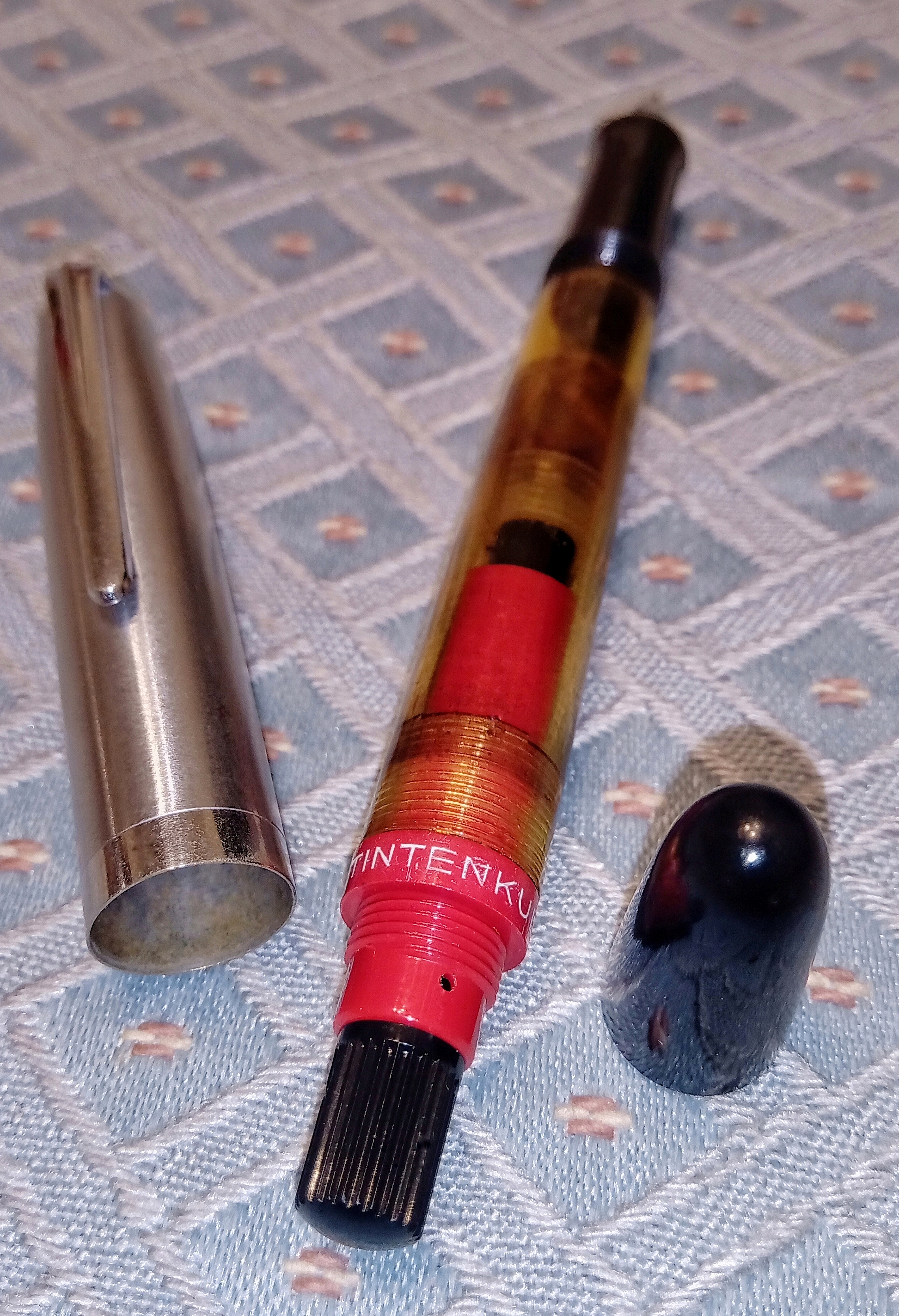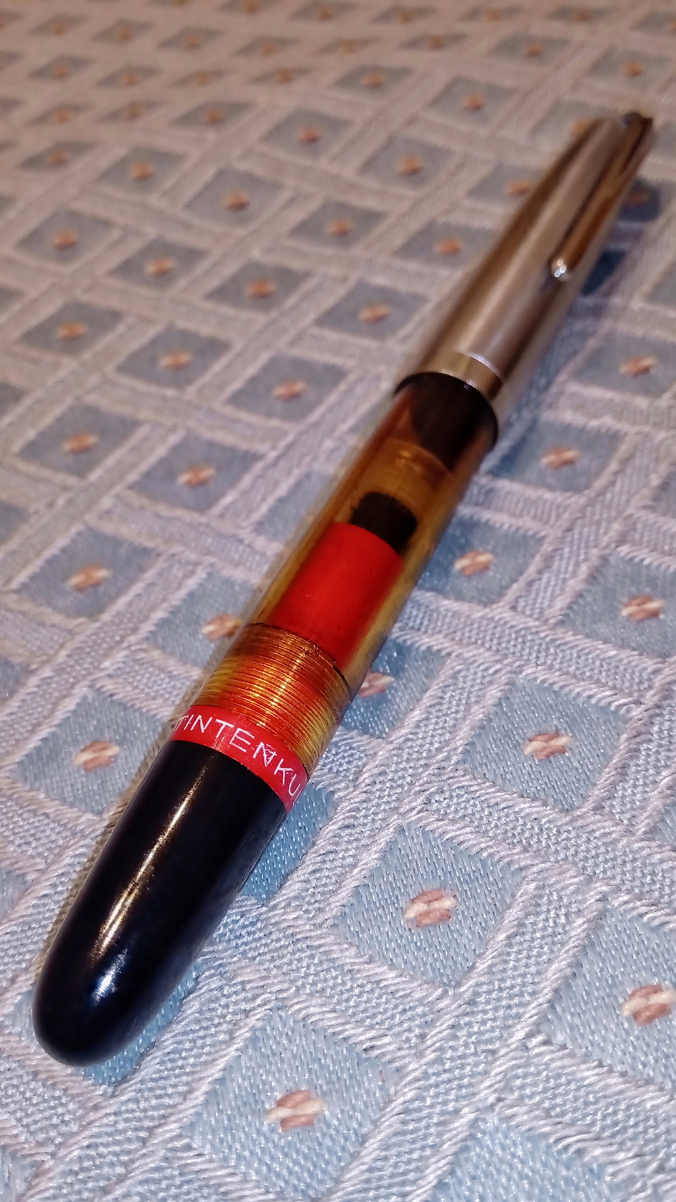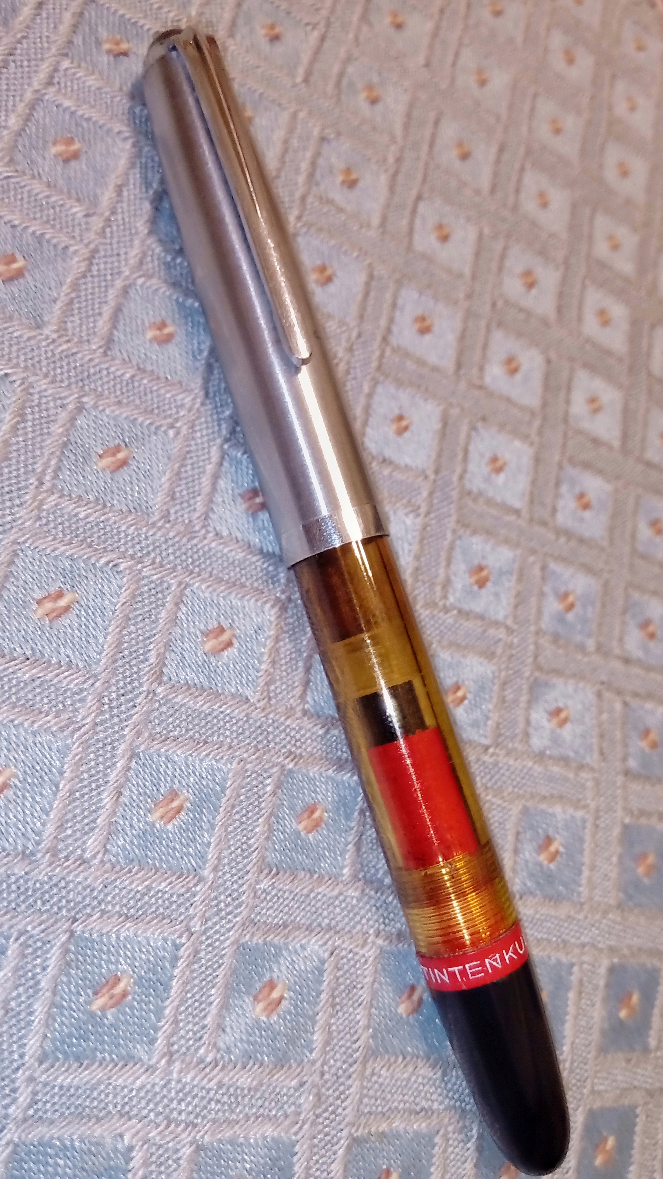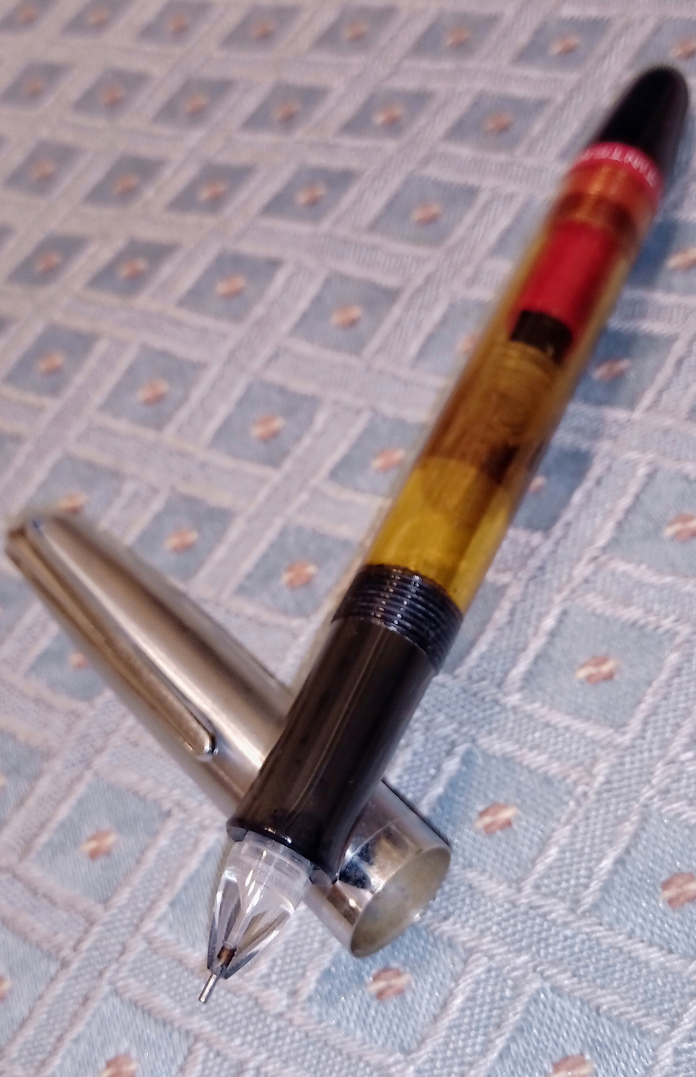 Logically, after more than 60 years celluloid has aged taking on that yellowish hue, so it could still be considered in the category of "demonstration fountain pens"...