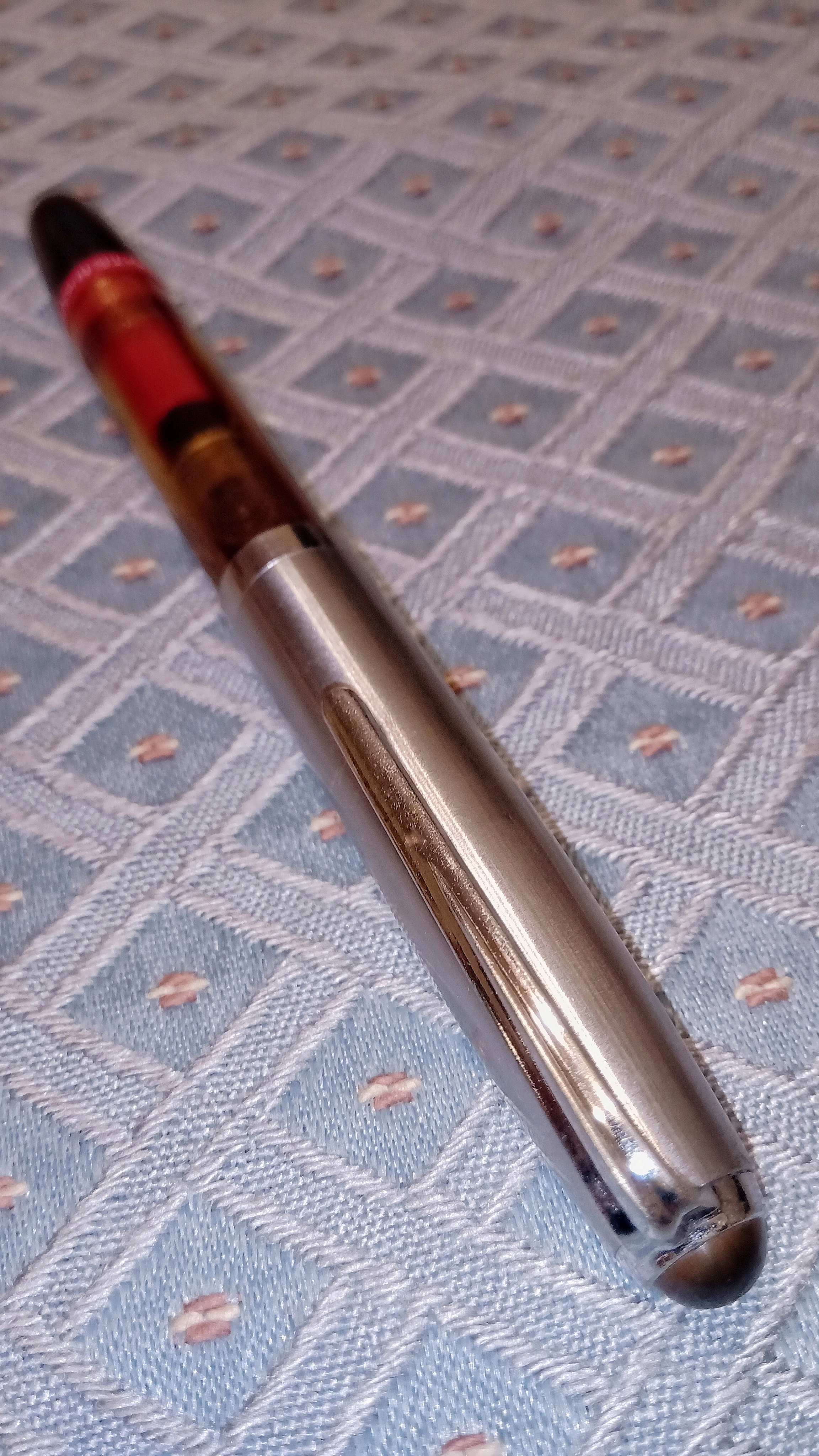 Logicamente dopo più di 60 anni la celluloide è invecchiata assumendo quella tonalità giallastra, tanto da poterla ancora considerare nella categoria delle "penne da dimostrazione"...