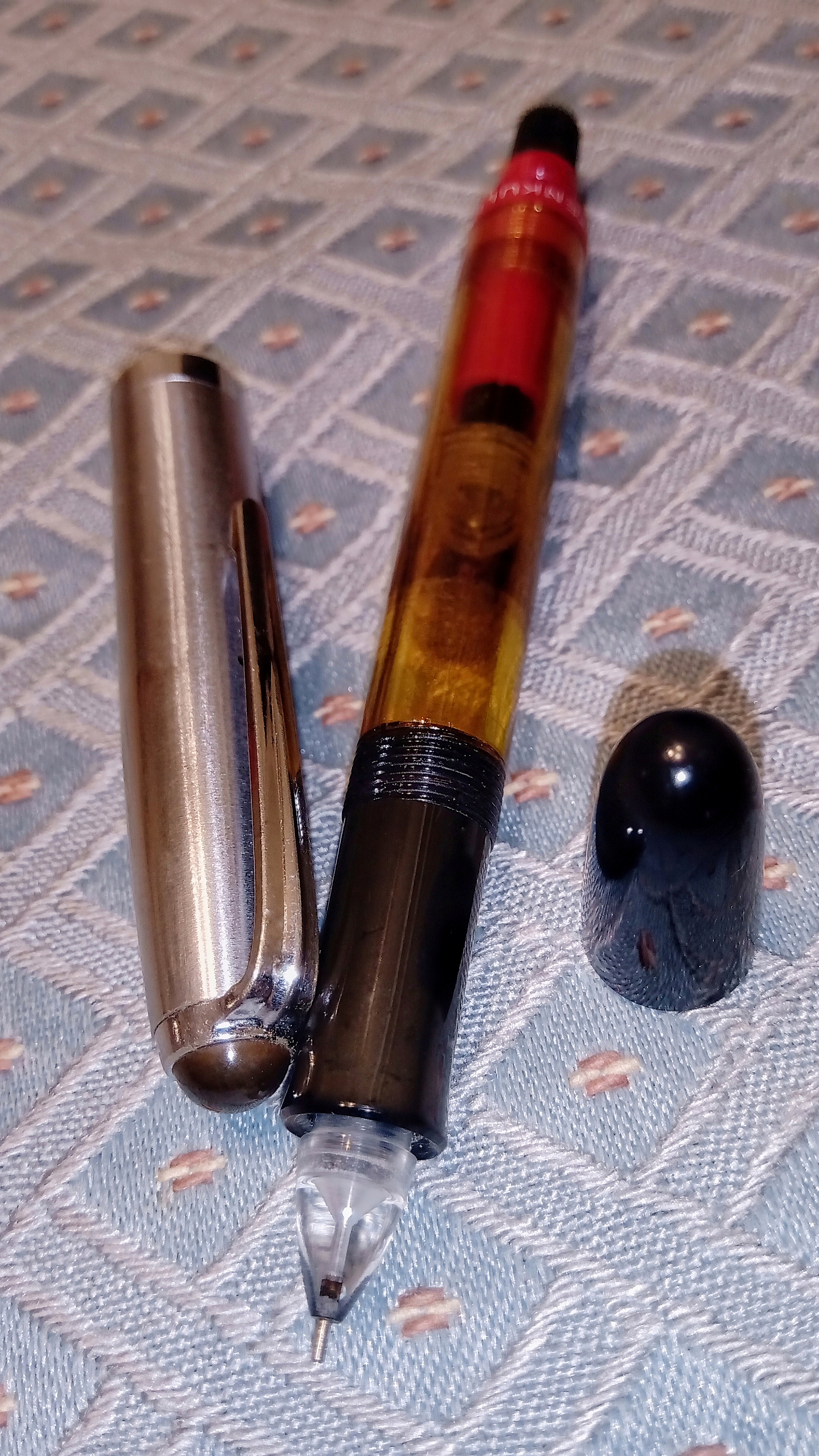 Uno di questi ha il cappuccio nichelato, e l'altro, che hanno entrambi il corpo e la punta trasparenti, il che li rende davvero speciali...!!!