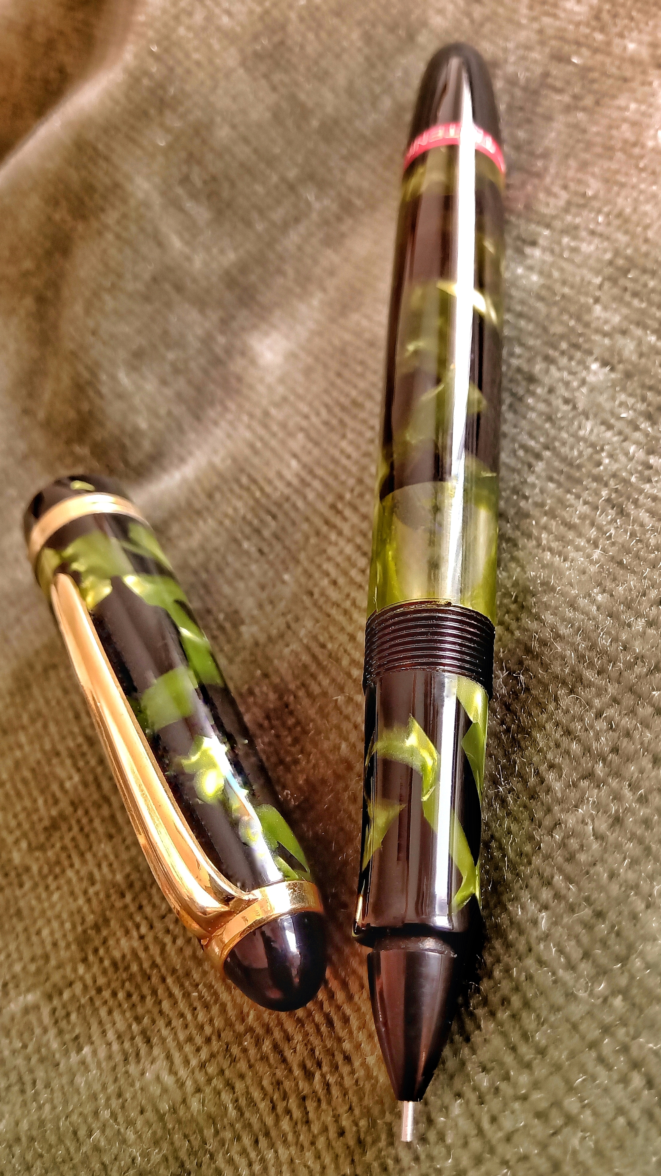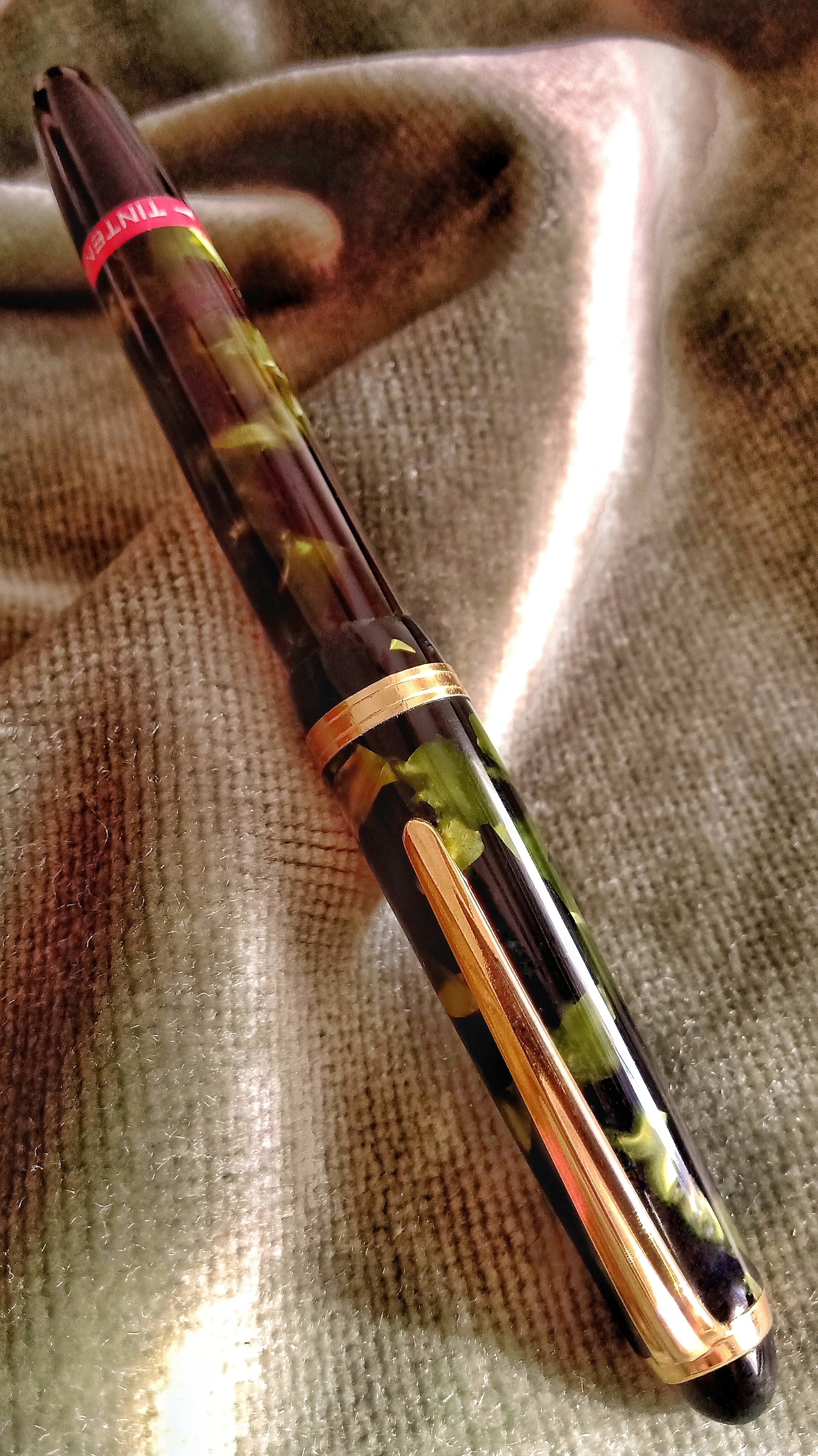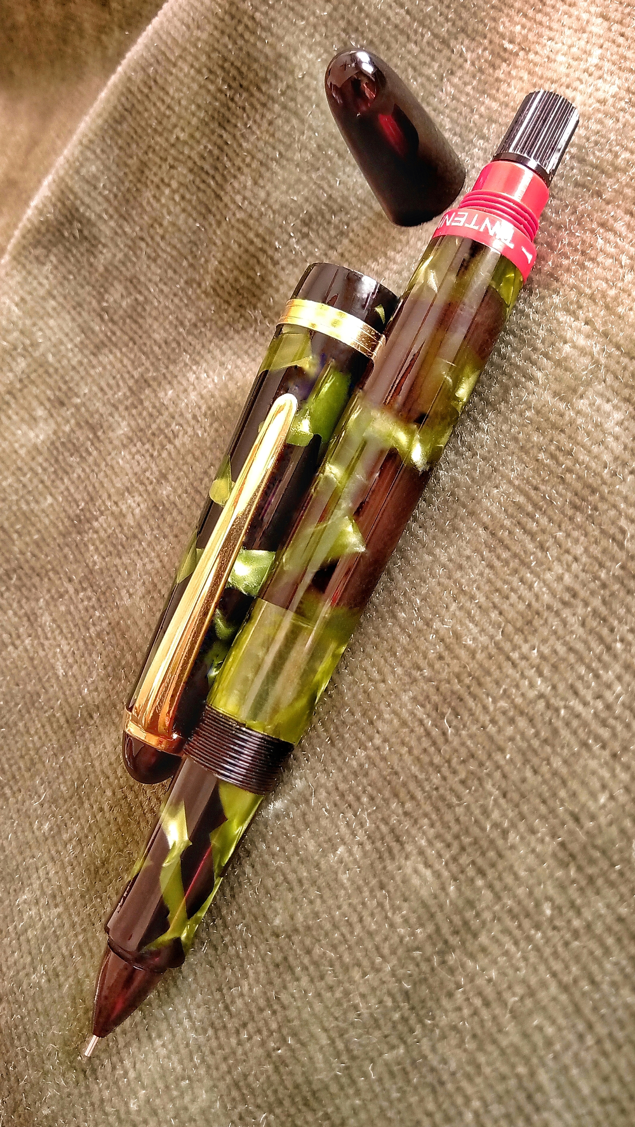 I would like to present to you in this continuation of capillographs, this Tintenkuli from the 50s, third generation, that although I cannot say with certainty if it was manufactured in Germany or Argentina, its unique structure is made of celluloid with a green pearl laminate that gives a very particular beauty...