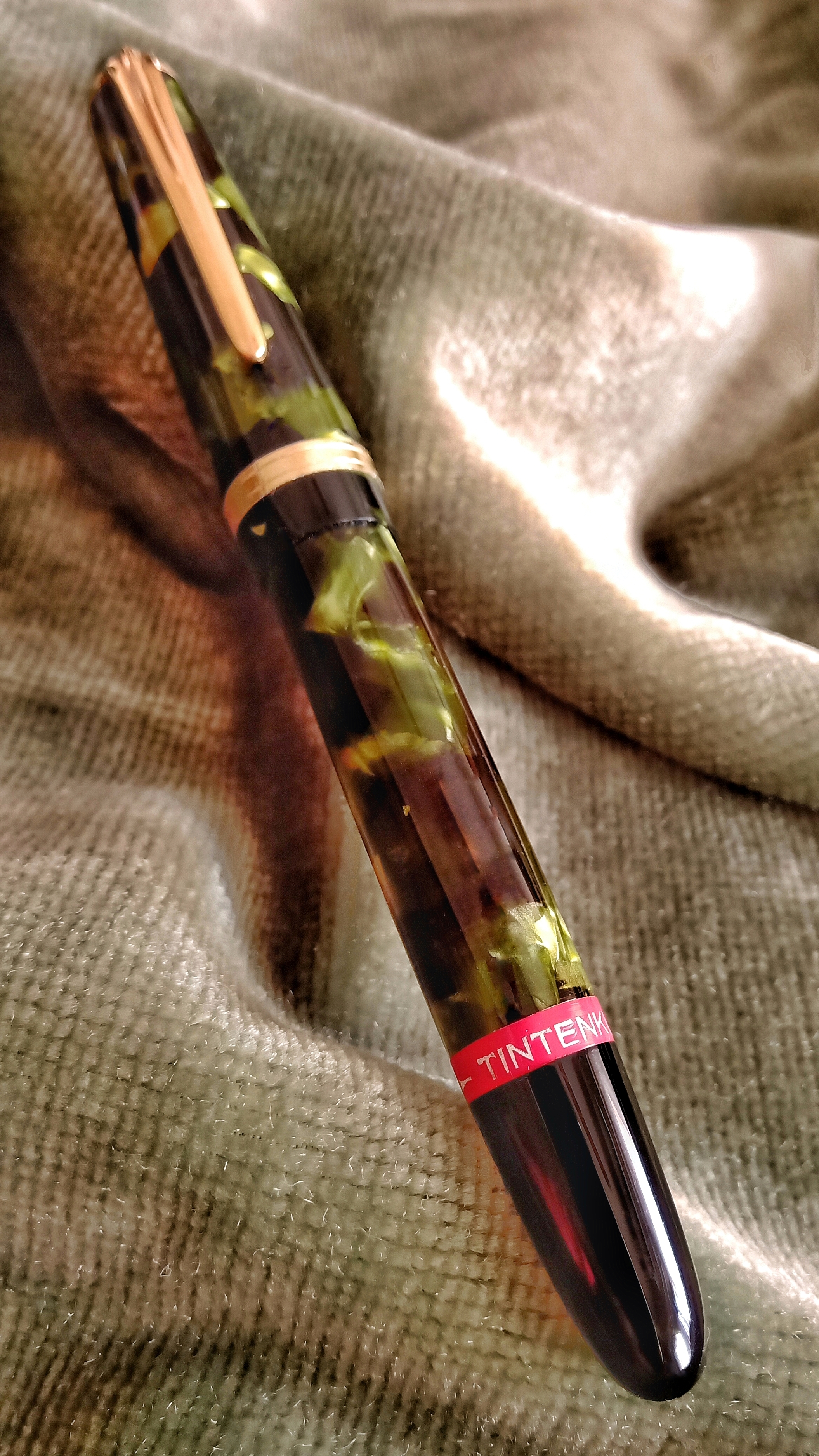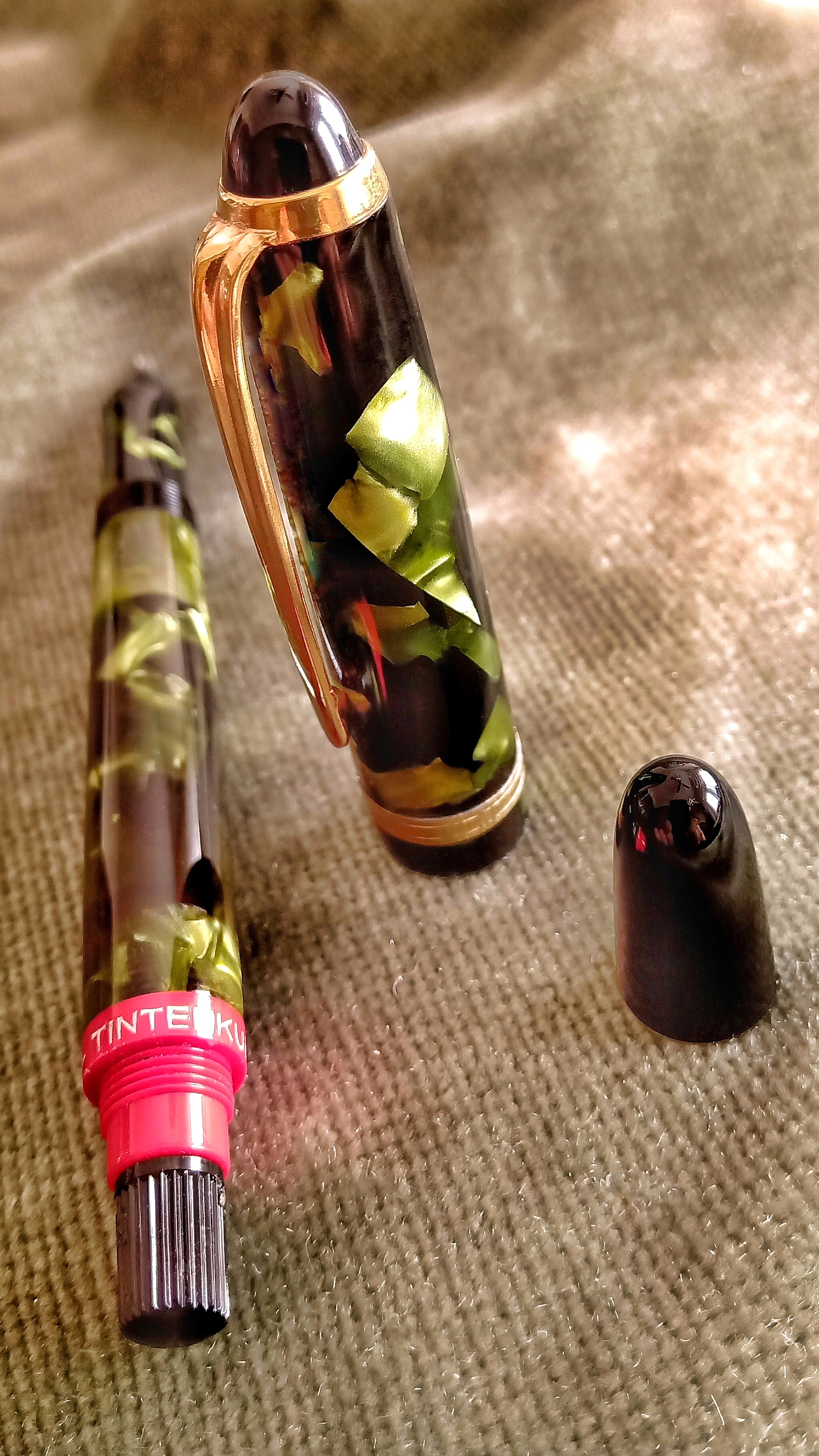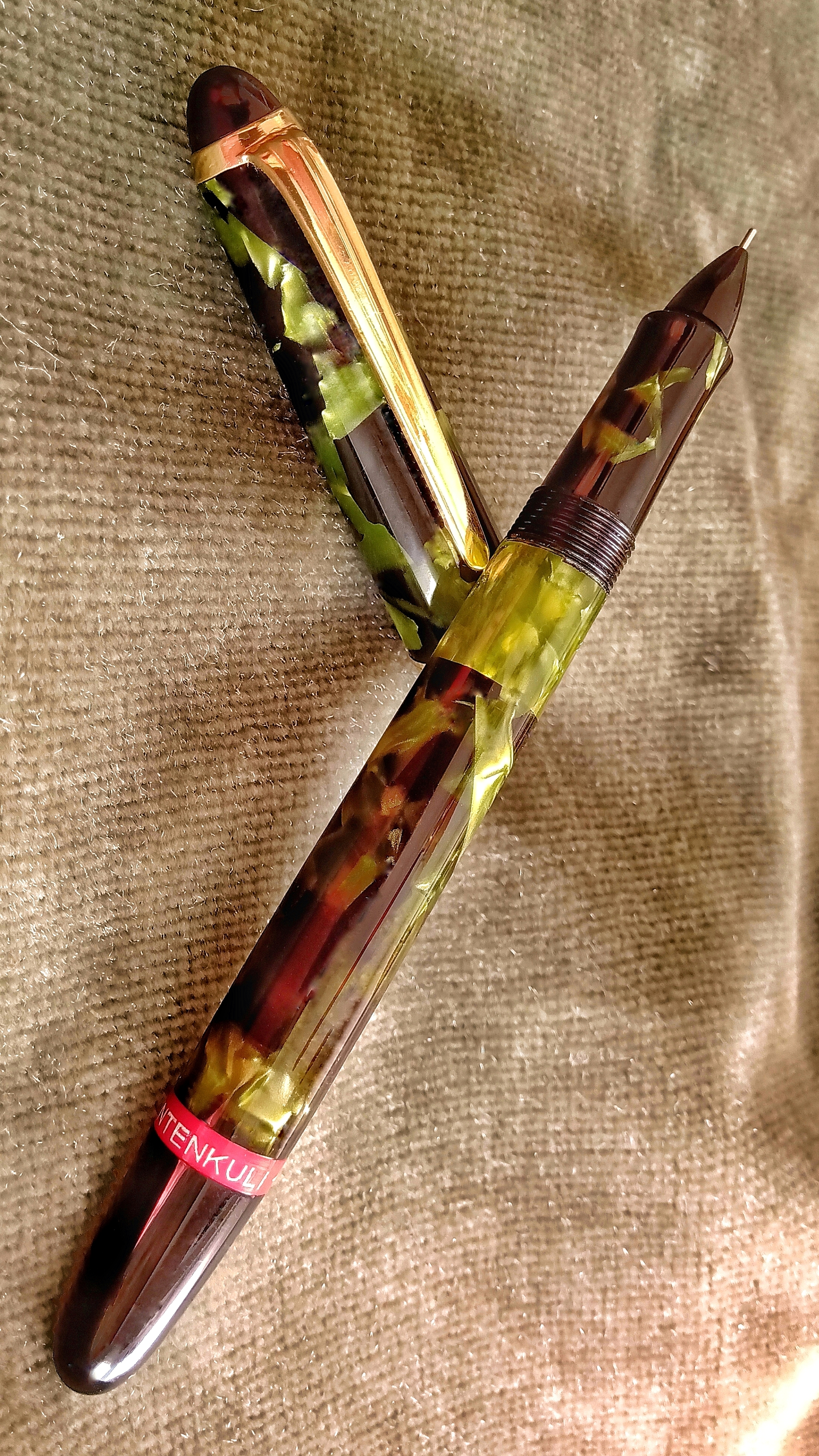 I would like to present to you in this continuation of capillographs, this Tintenkuli from the 50s, third generation, that although I cannot say with certainty if it was manufactured in Germany or Argentina, its unique structure is made of celluloid with a green pearl laminate that gives a very particular beauty...