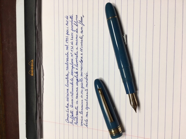Oggi vi presento una mia piccola chicca: una Omas Extra (ogiva) edizione limitata 140 anni Buffetti.n Scrive che è una favola (grafia a parte)