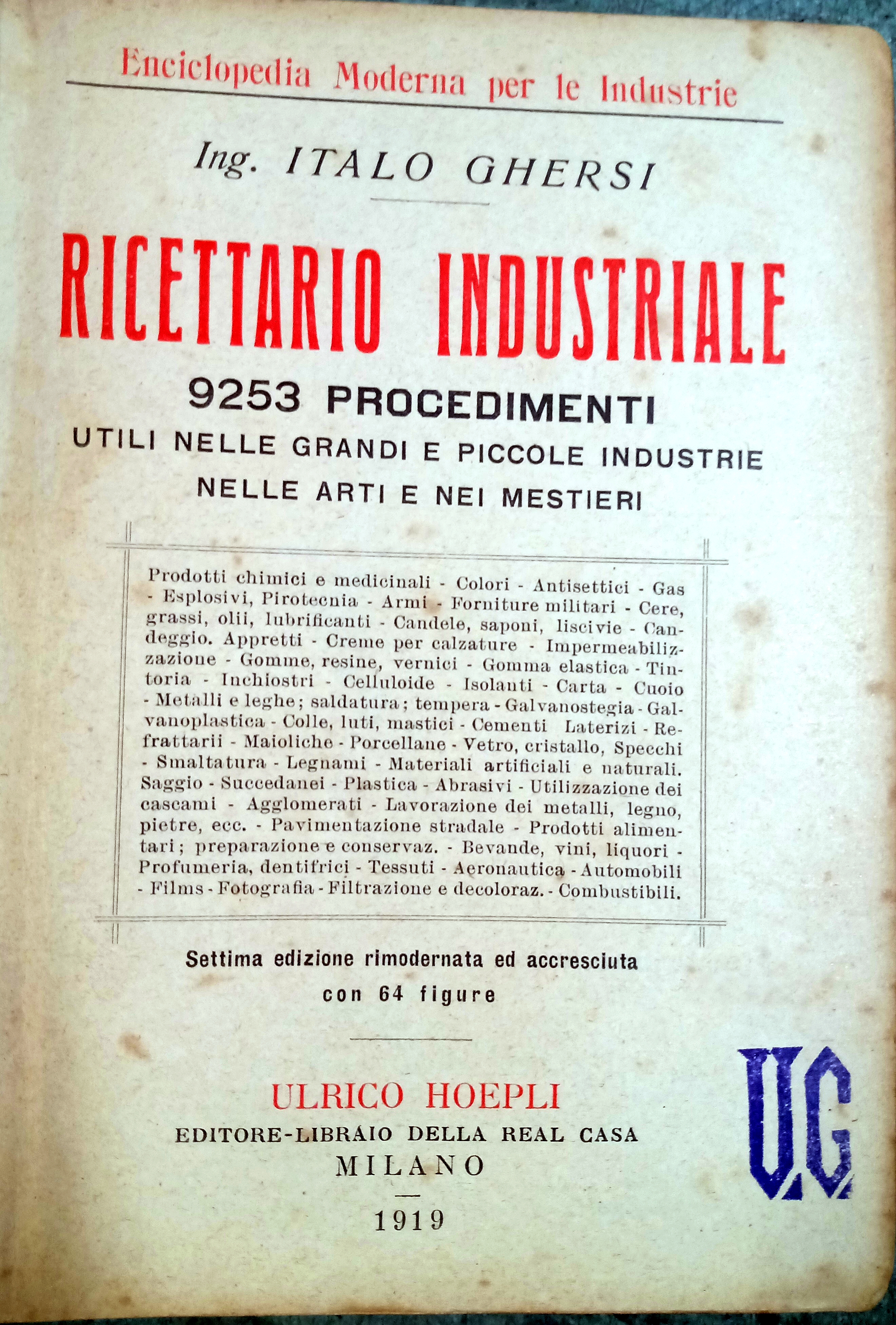 L'altra fonte è il Manuale Hoepli del Dott. R. Guareschi del 1915. Non ho problemi a fotografarlo e inserire le fotografie, 156 pagine (non chiedermi di scannerizzarle e passarle in PDF perchè i miei neurori vecchi e stanchi si rifiutano. il problema sono i diritti di copyright o proprietà letteraria. Si può fare o si va incontro a sanzioni ?