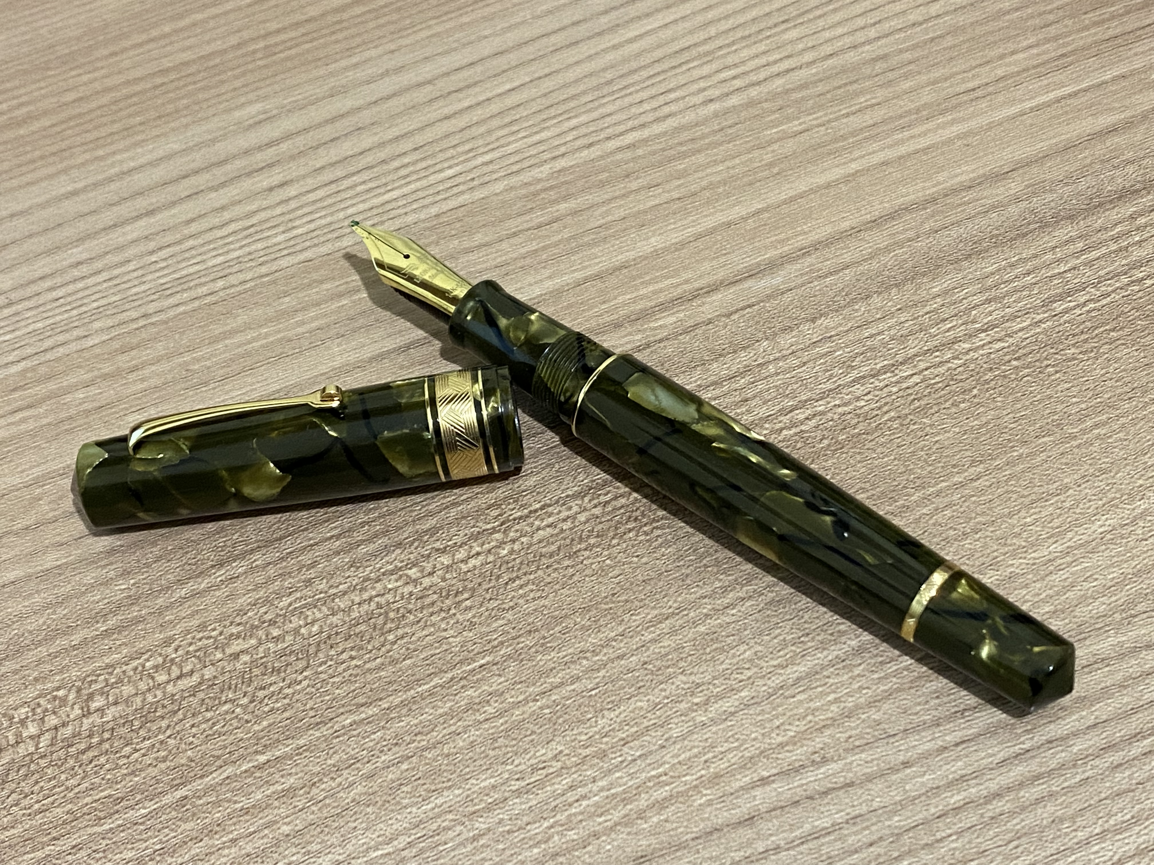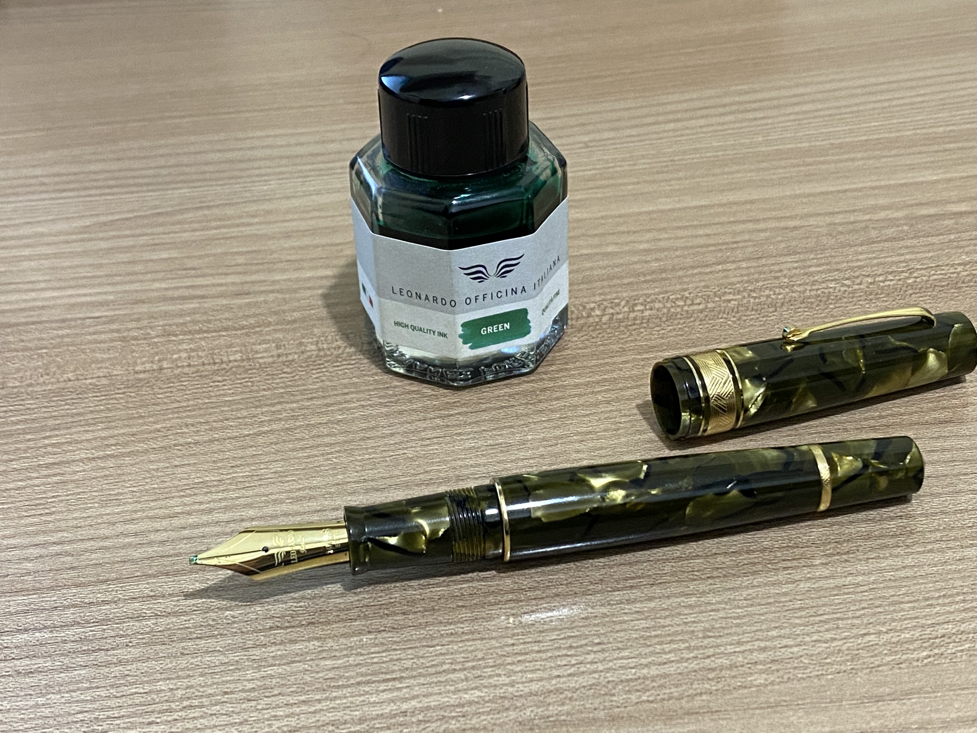 Eccomi quindi a parlare della mia ultima arrivata, una Saft Green Custom special edition. Premetto che questa penna per me ha un significato speciale, mi è stata regalata da mia moglie e realizzata per me da Leonardo per esaudire il suo desiderio di farmi dono di una penna esclusiva. Mia moglie ha contattato Salvatore Matrone dicendogli “lo voglio stupire” e lui ha fatto in modo di stupirmi con la solita professionalità e passione soddisfacendo in pieno la richiesta di mia moglie. E’ questo il modo che ha Leonardo per far sentire sentire ogni suo cliente un cliente esclusivo, accontentare nei limiti del possibile e con ogni mezzo ogni richiesta: chiunque ha a che fare con loro si sente un po’ speciale.