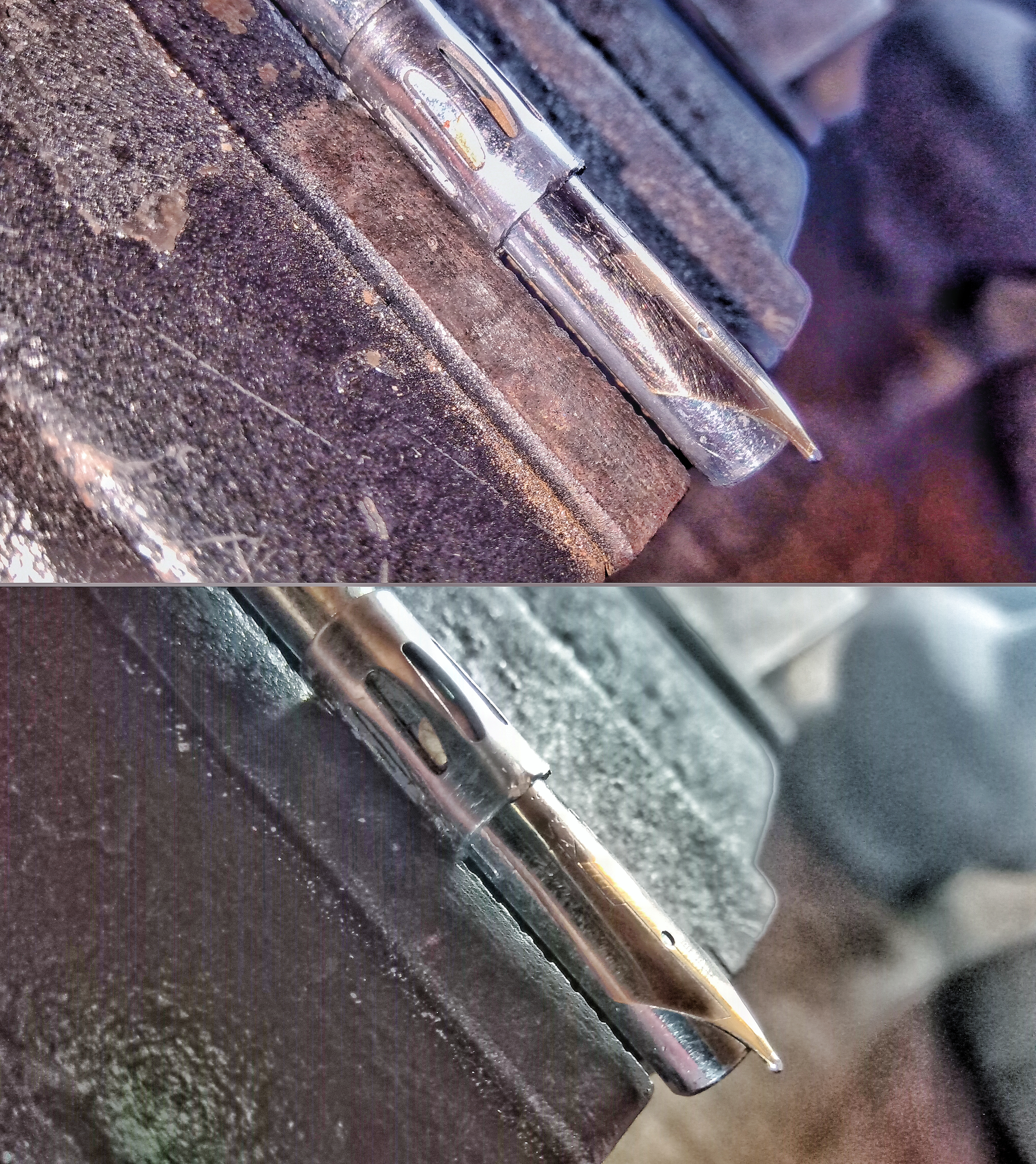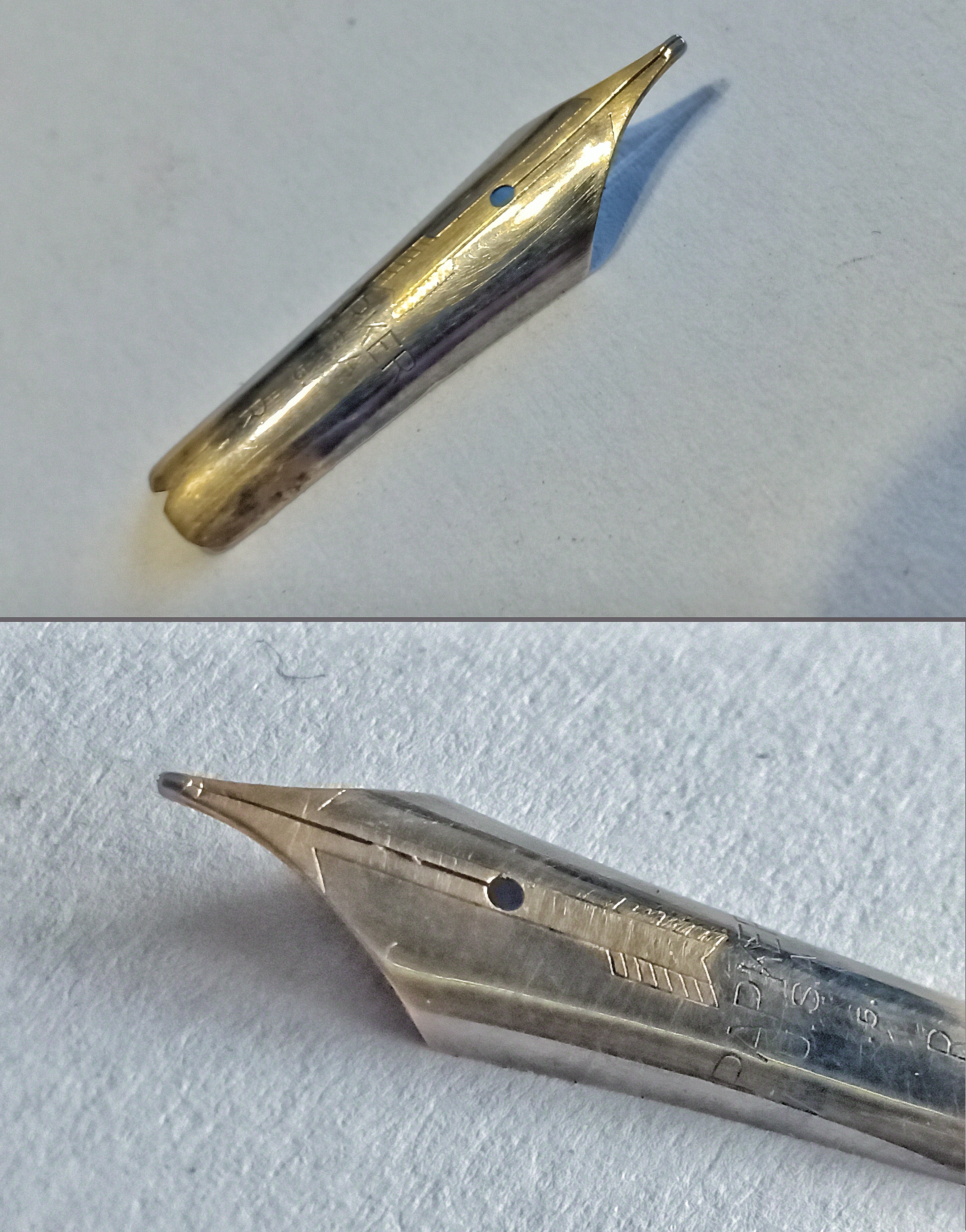 Once an "acceptable" smoothing was achieved, we began a polishing process with 3500 grade emery paper that logically ends up sweeping the microns of gold or platinum mask that the nib had in some parts of its surface (there was very little of the mask left)...