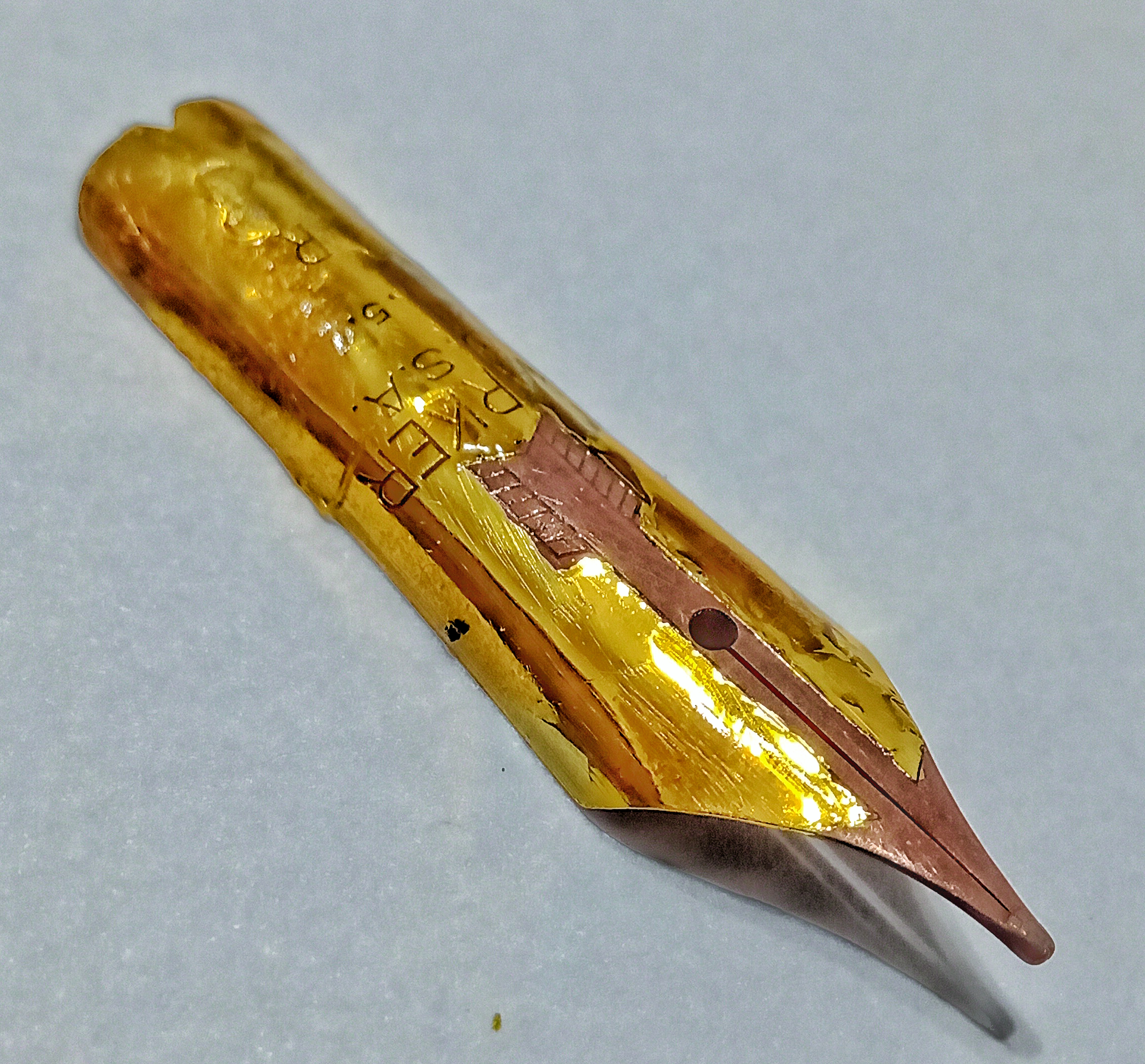 Once the deposition is finished, the nib must be washed well to remove all traces of acid, and then we remove the lacquer with a good organic solvent (acetone or thinner) with a very interesting result...