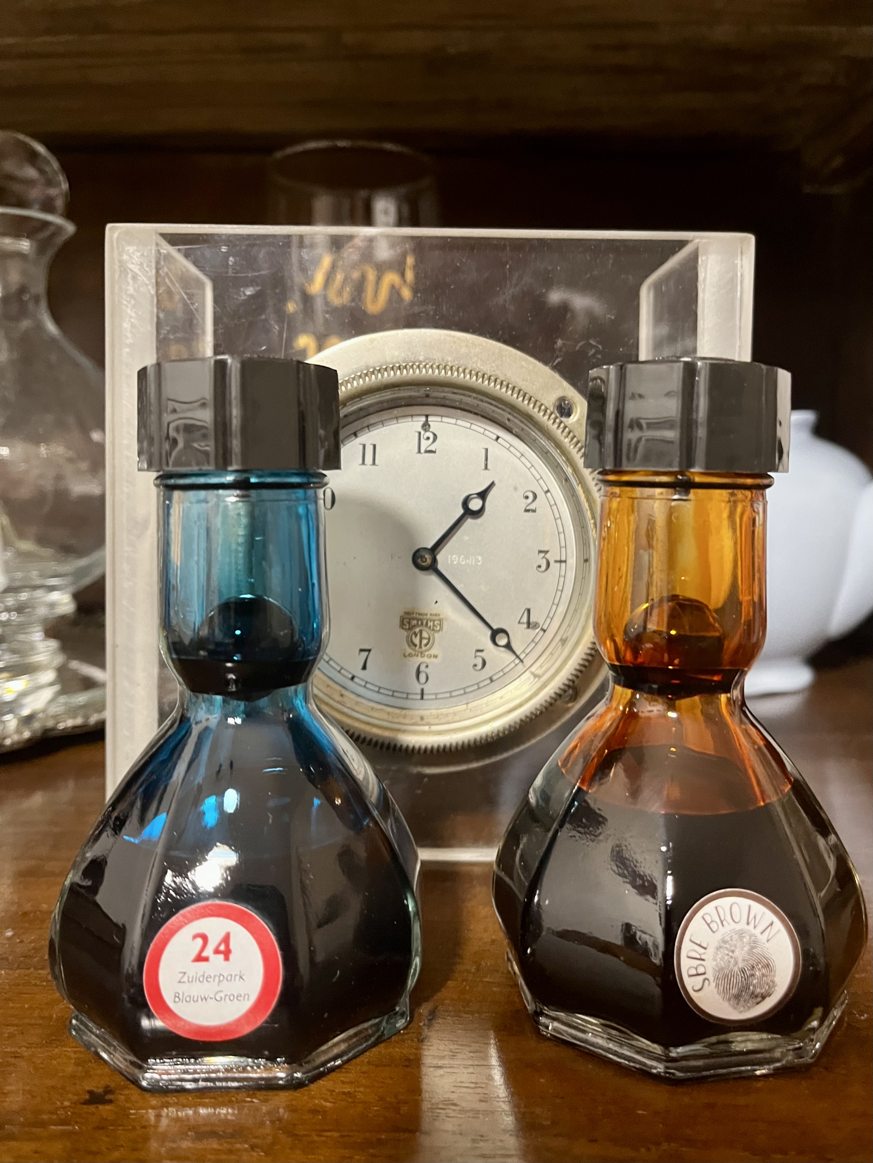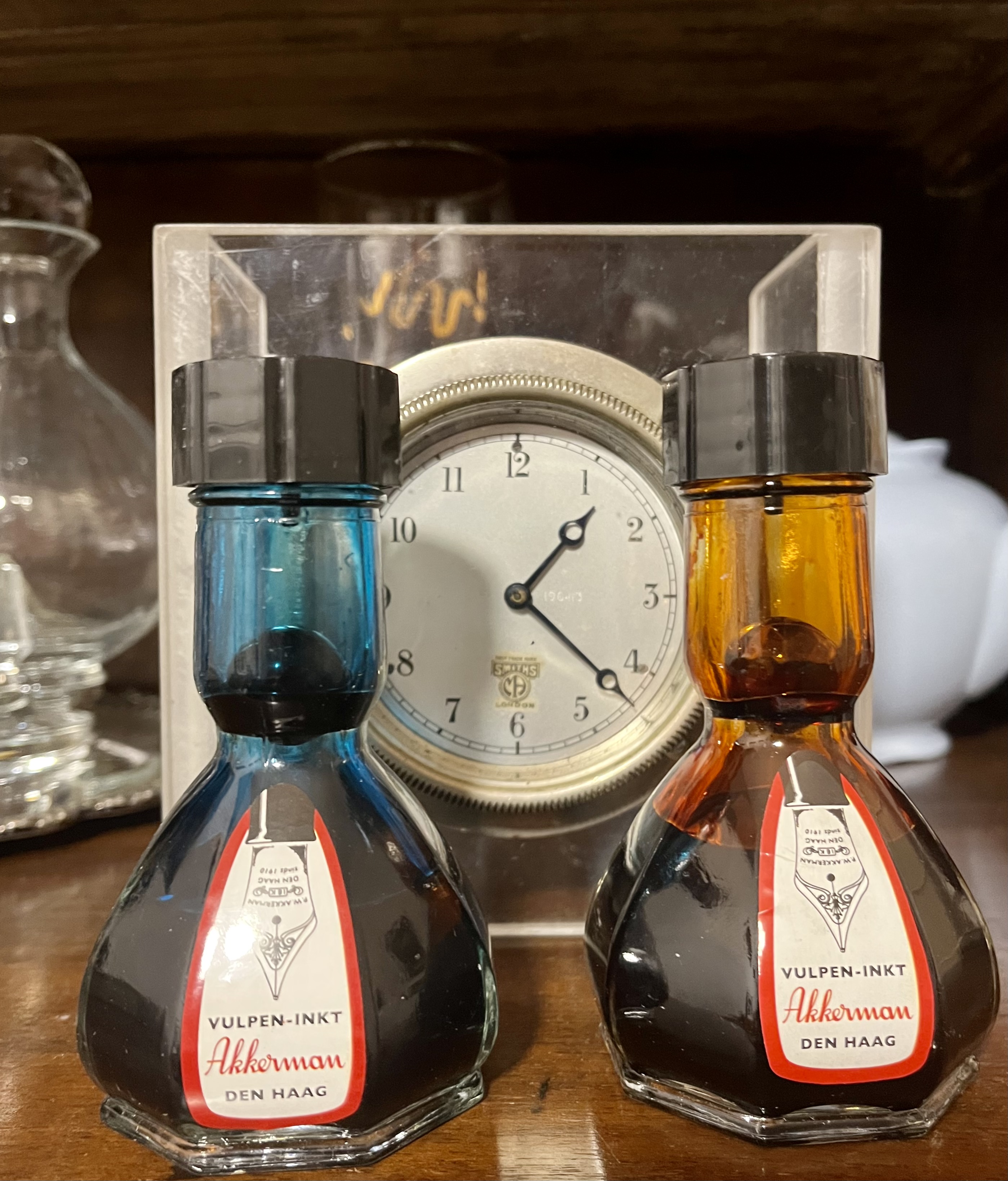 I calamai sono una copia di quelli introdotti da Gimborn negli anni 30, gli inchiostri sono fatti da Diamine. Ne ho comprato qualcuno dal negozio fisico all'Aia esclusivamente per la peculiarità del calamaio.