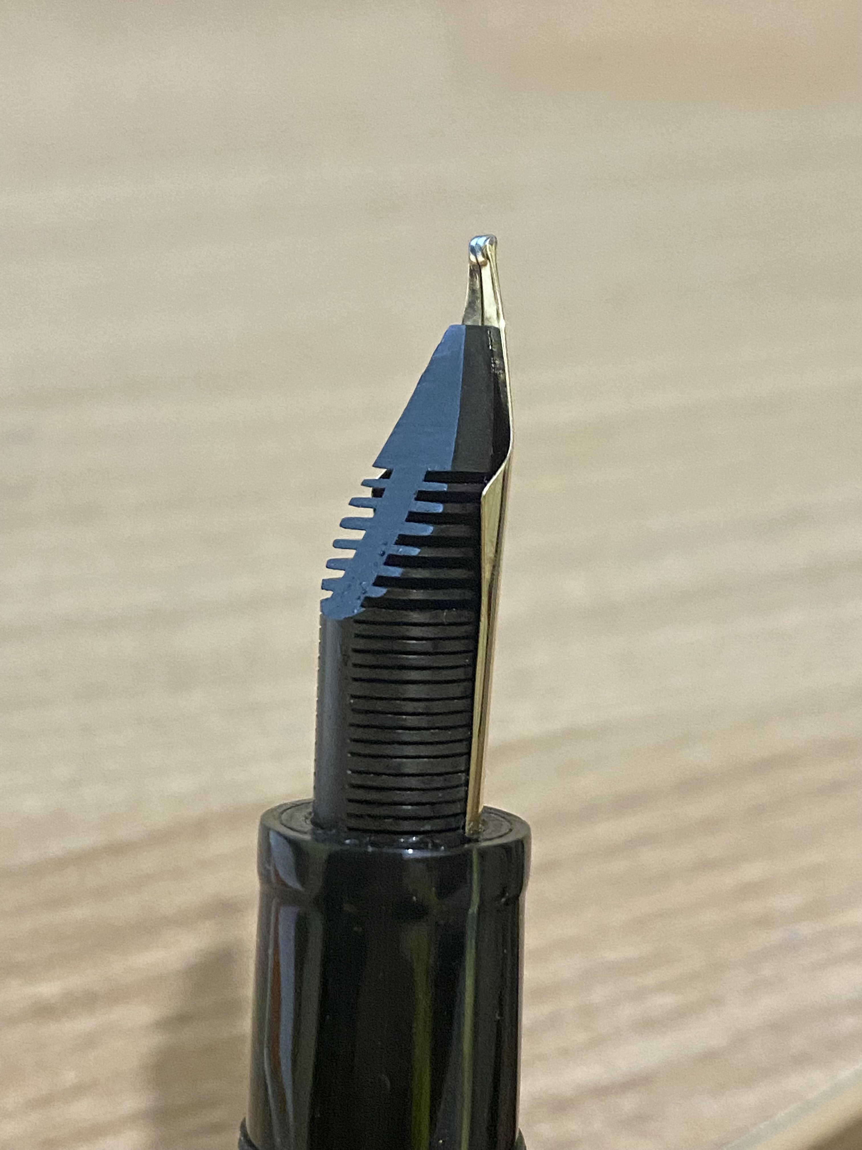 Oltre allo stub ho anche montato un gruppo scrittura con un pennino F, prelevato da una 149 cannibalizzata, che rende la penna più "usabile" in contesti lavorativi.