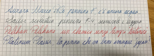 Sulla Marco Polo: Aurora Blu di una cartuccia stravecchia (almeno di 20 anni), come si vede c’è ancora molta acqua nell’alimentazione, infatti il colore è molto slavato.