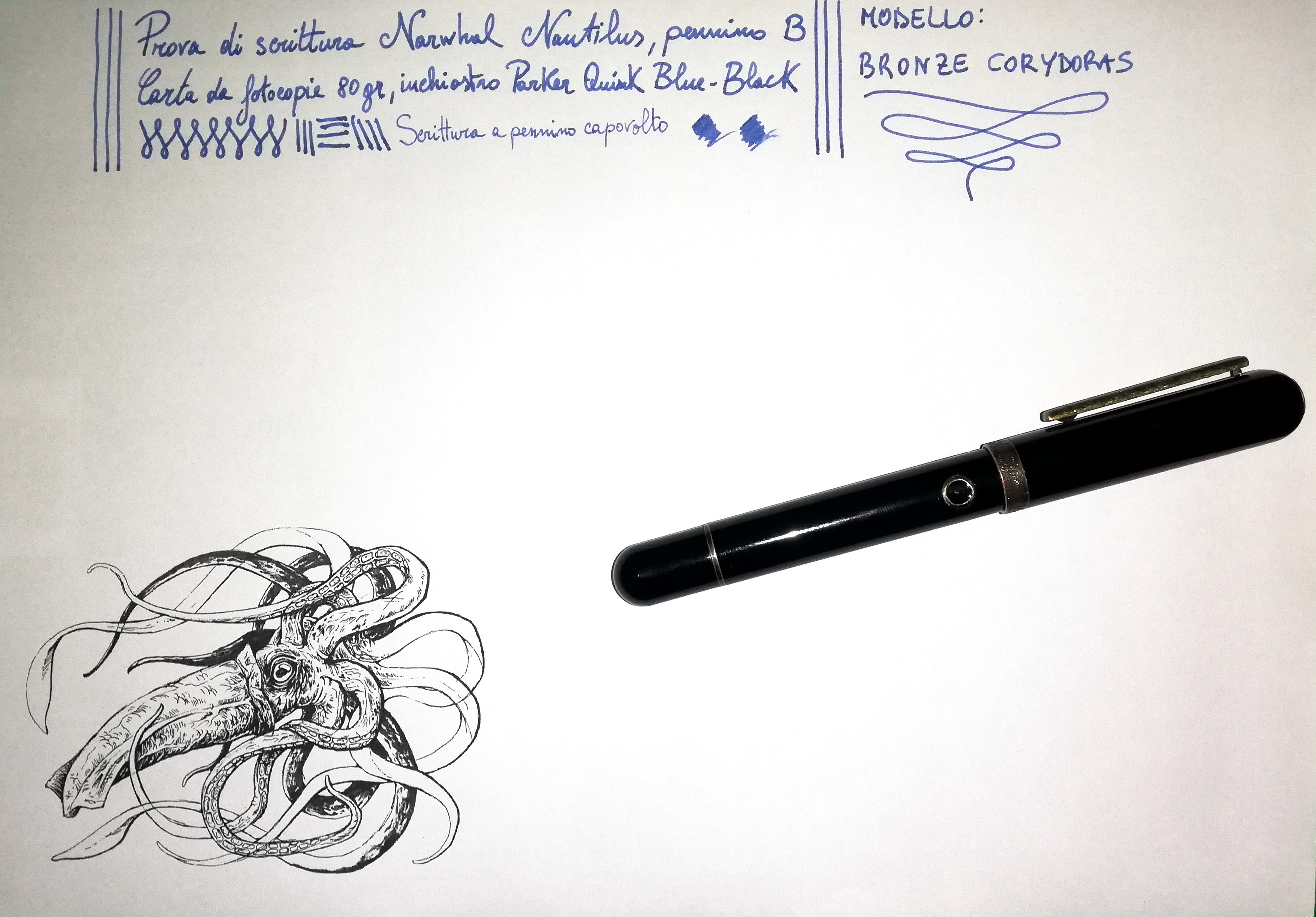Ciao a tutti, lungi dal ritenerla una vera e propria recensione, vorrei proporvi le mie osservazioni su questa penna che ho recentemente acquistato e che sto usando da qualche giorno: è una Narwhal Nautilus, versione “Bronze Corydoras”.