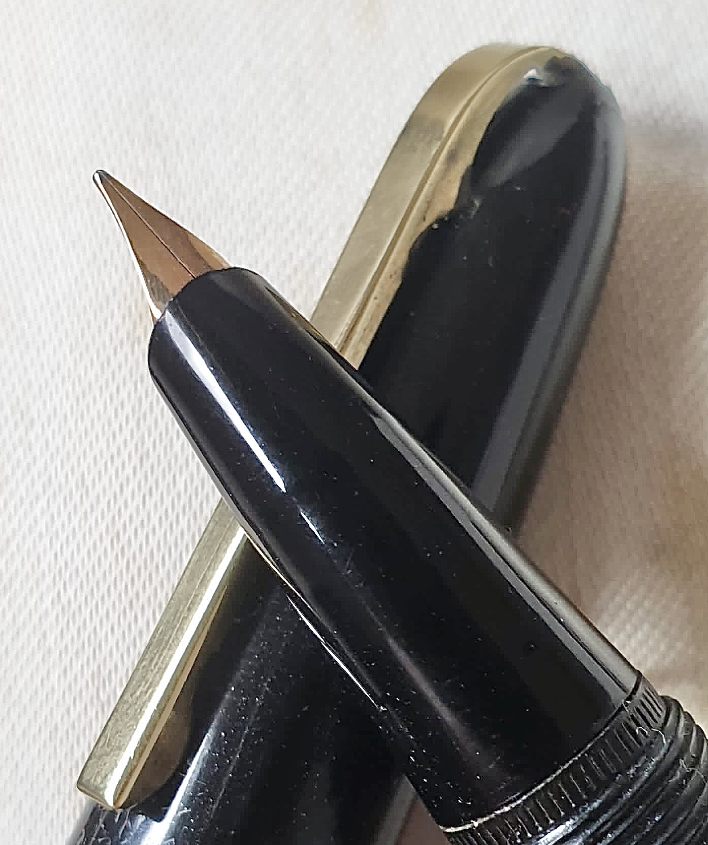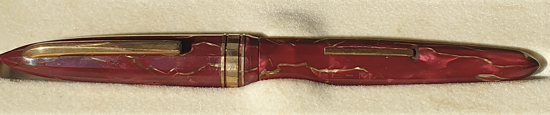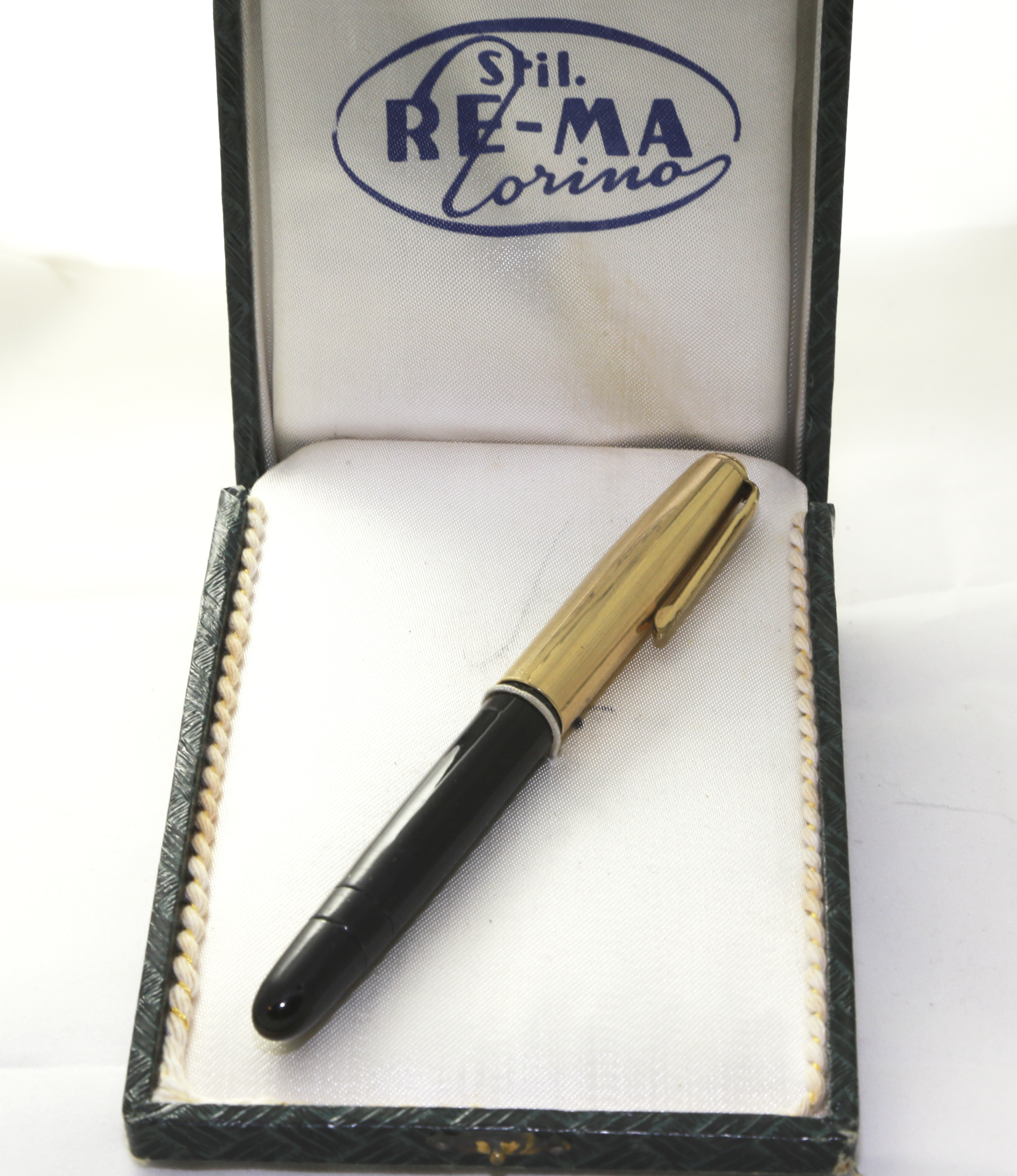 Buon esempio di stilografica in astuccio, da "Stil RE-MA", Torino; un po' Skyline un po' 51... Caricamento a bottone di fondo.