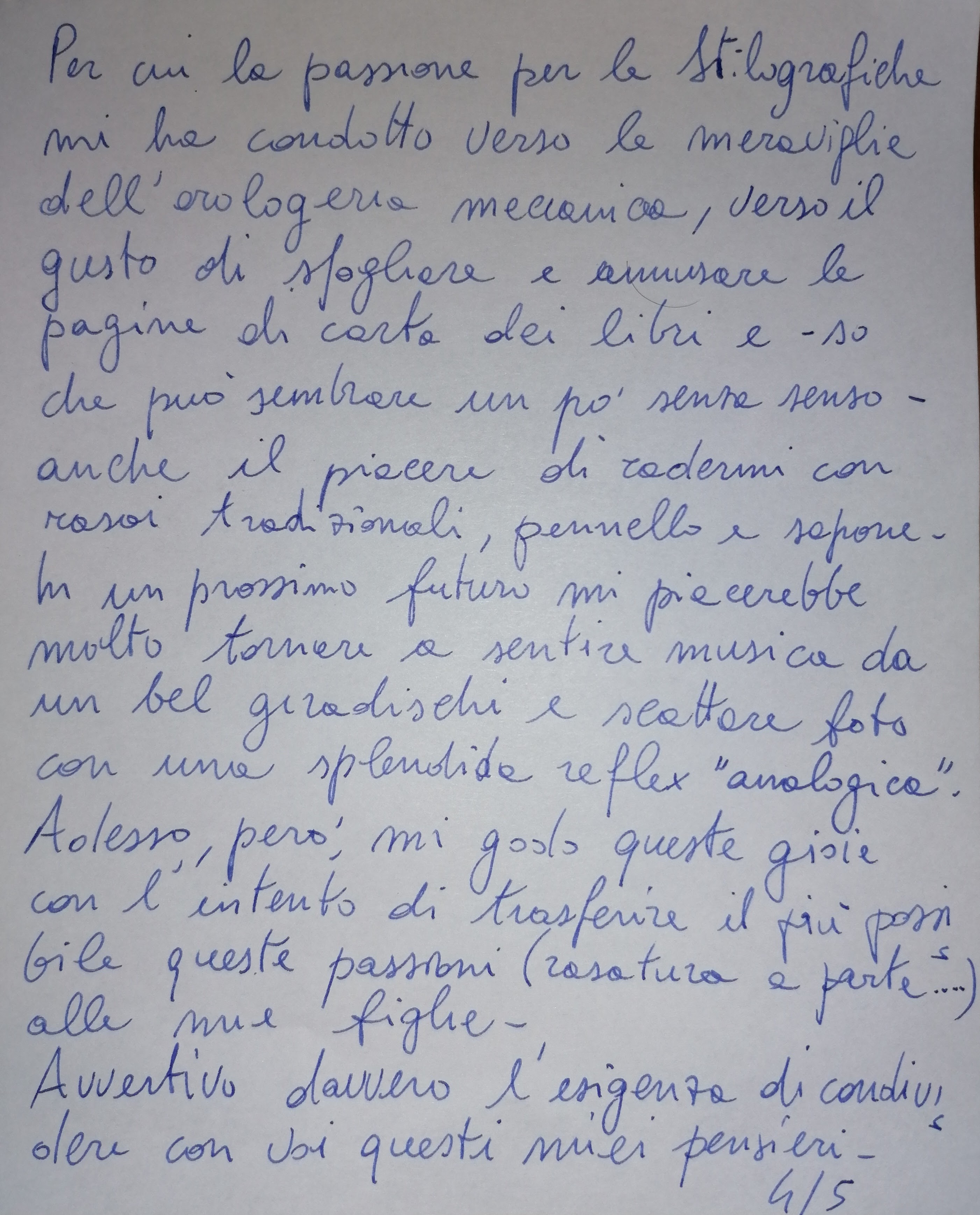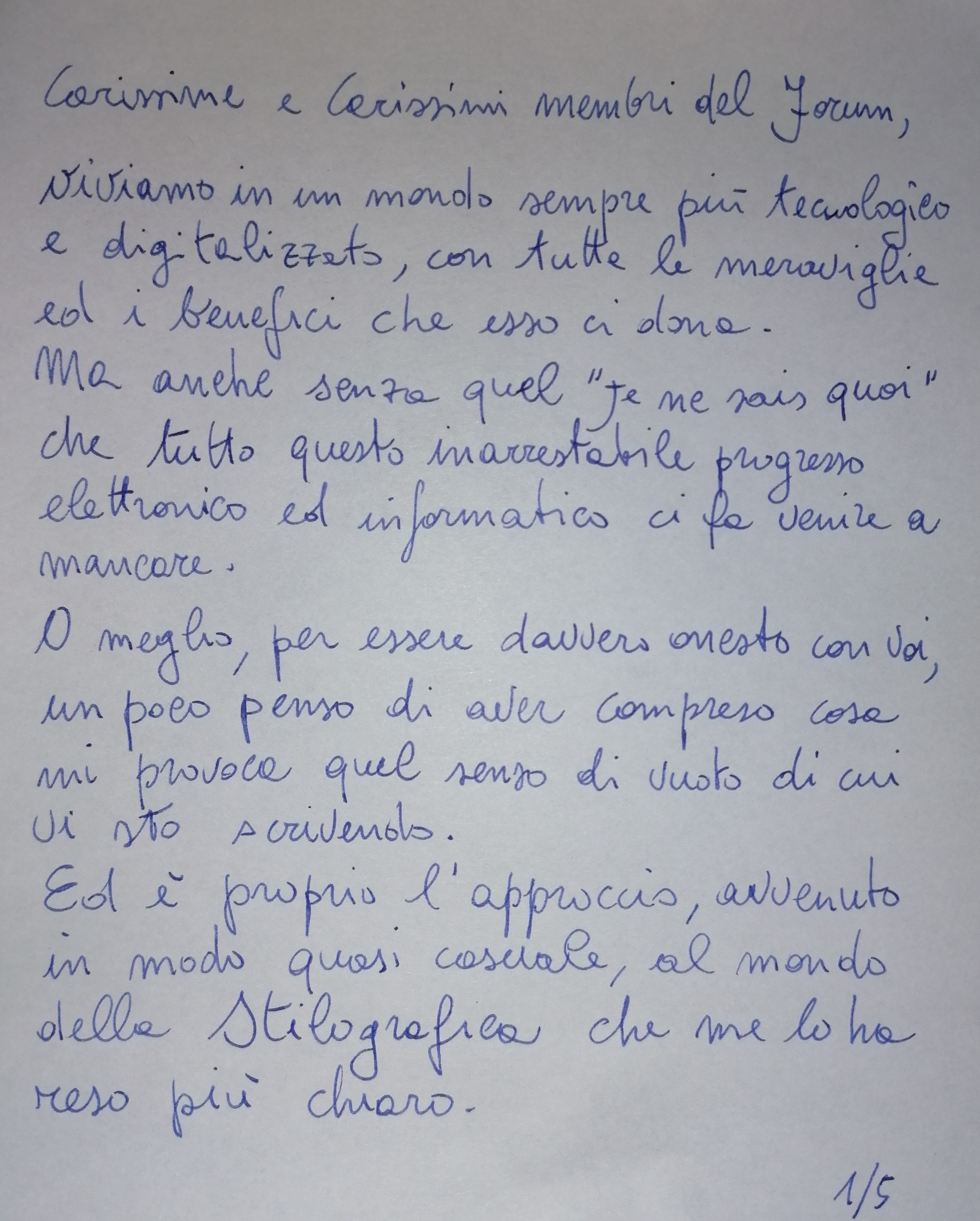Il piacere dell'analogico in un mondo ormai digitale. La tecnologia è utile, ma a volte è spersonalizzante. Scrivendo con una stilografica, oltre al piacere del gesto, c'è anche la riconoscibilità dello scrivente a prima vista, se si conosce la grafia di quest'ultimo. Con un computer, si scrive tutti allo stesso modo. Detto questo, anche a me piace ritagliarmi un momento da dedicare alla lettura (anche se leggo prevalentemente col kindle
