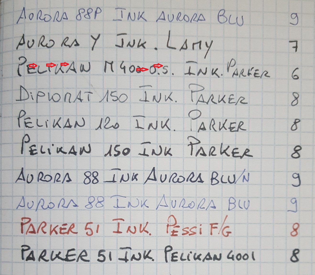 Ho provato in precedenza il Pelikan 4001 e lo faceva comunque.. anzi,, di più, ma è una boccetta di 50 anni fa, non fa molto testo (anche se devo dire che lo stesso inchiostro sulla Parker 51 va alla grande, vedi ultima riga). La M400 è una penna recente, inchiostrata solo 2 volte.