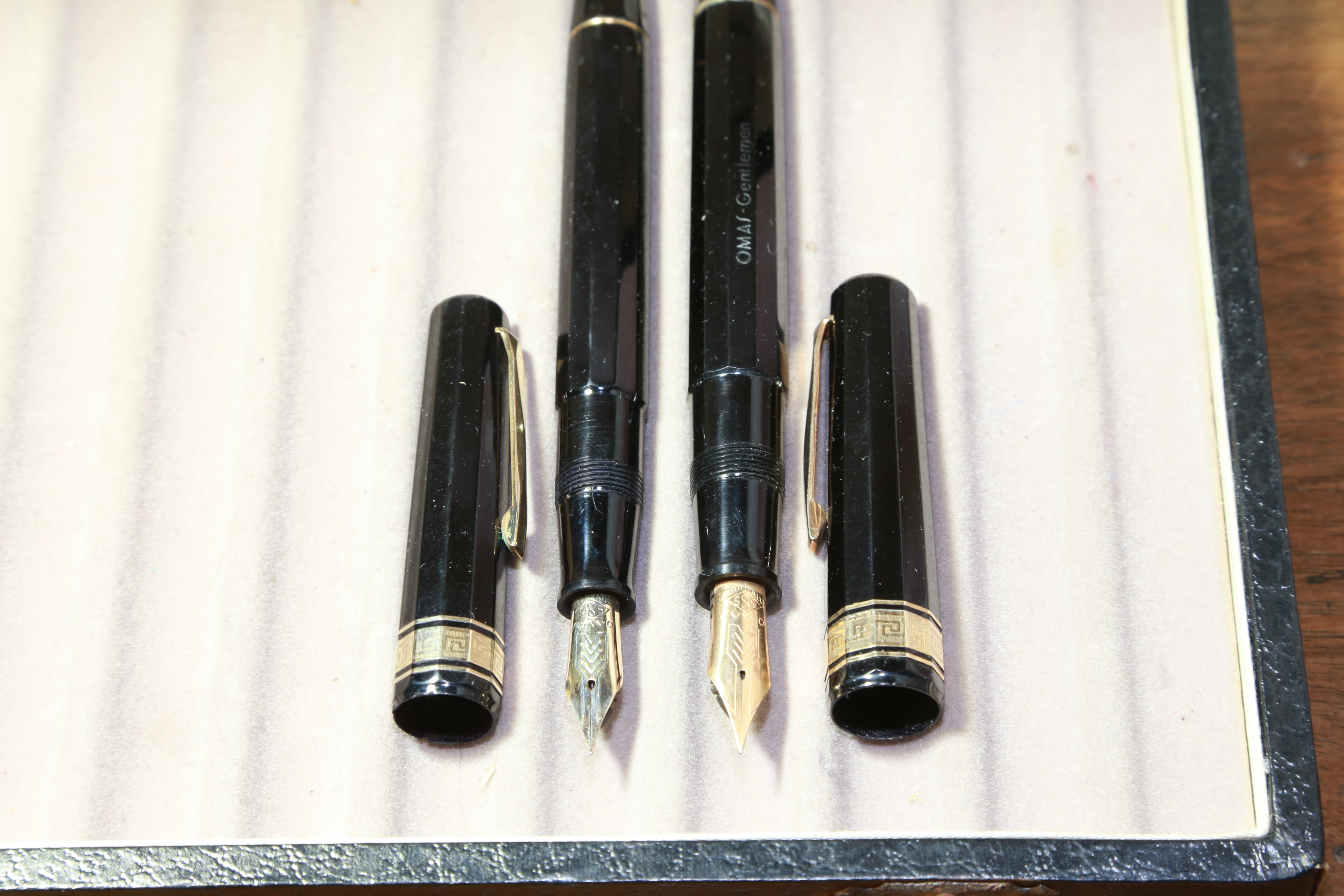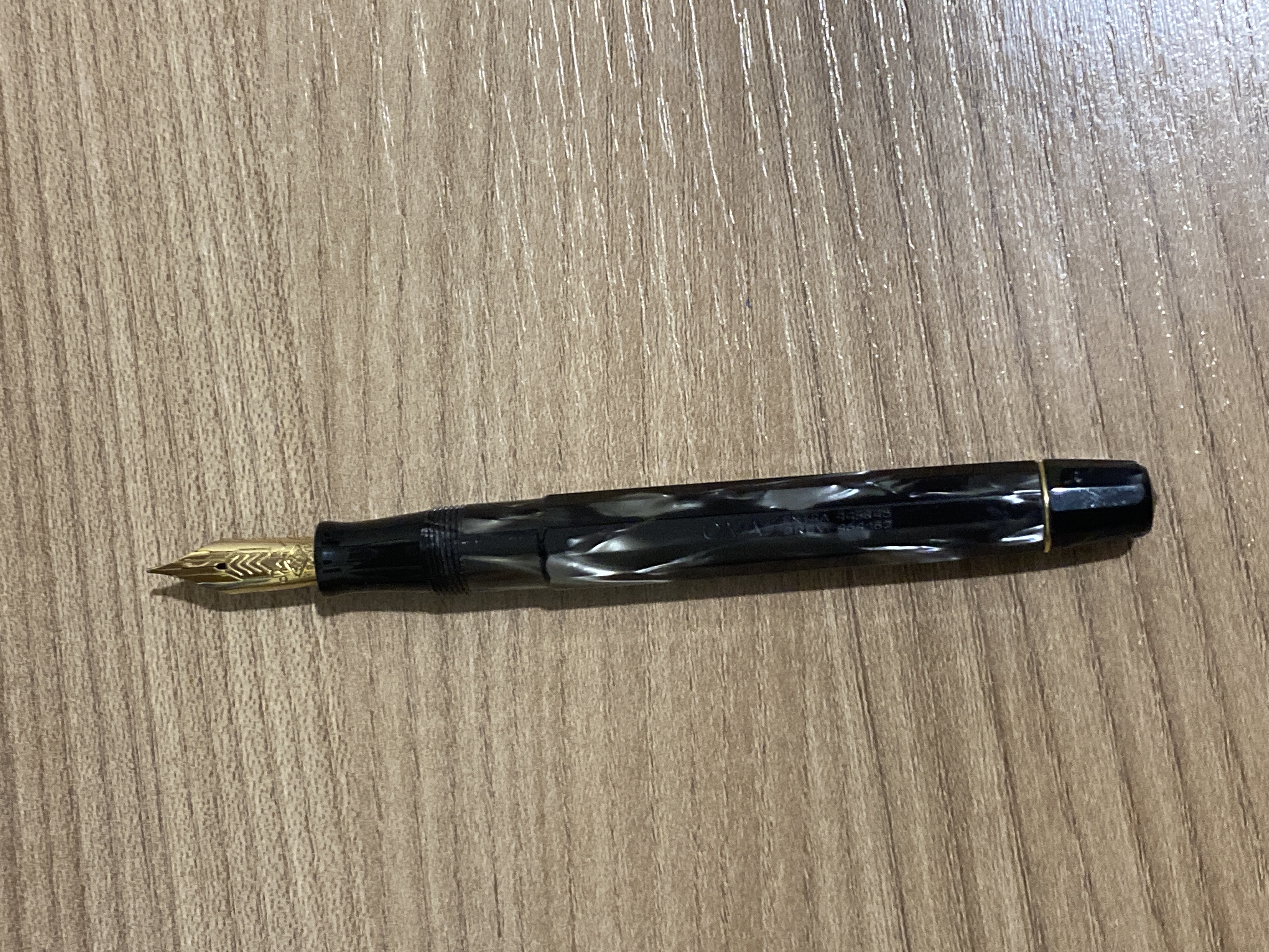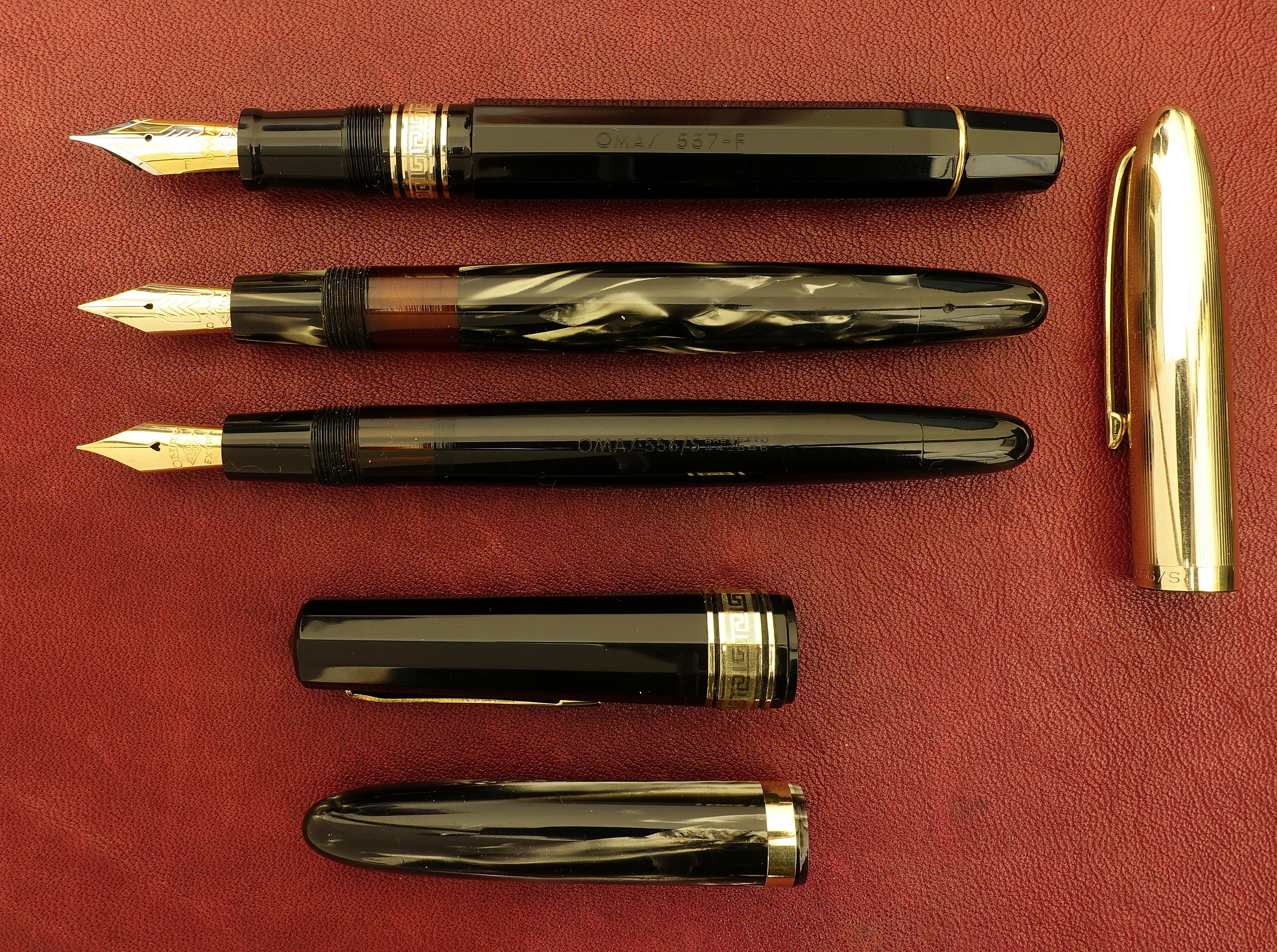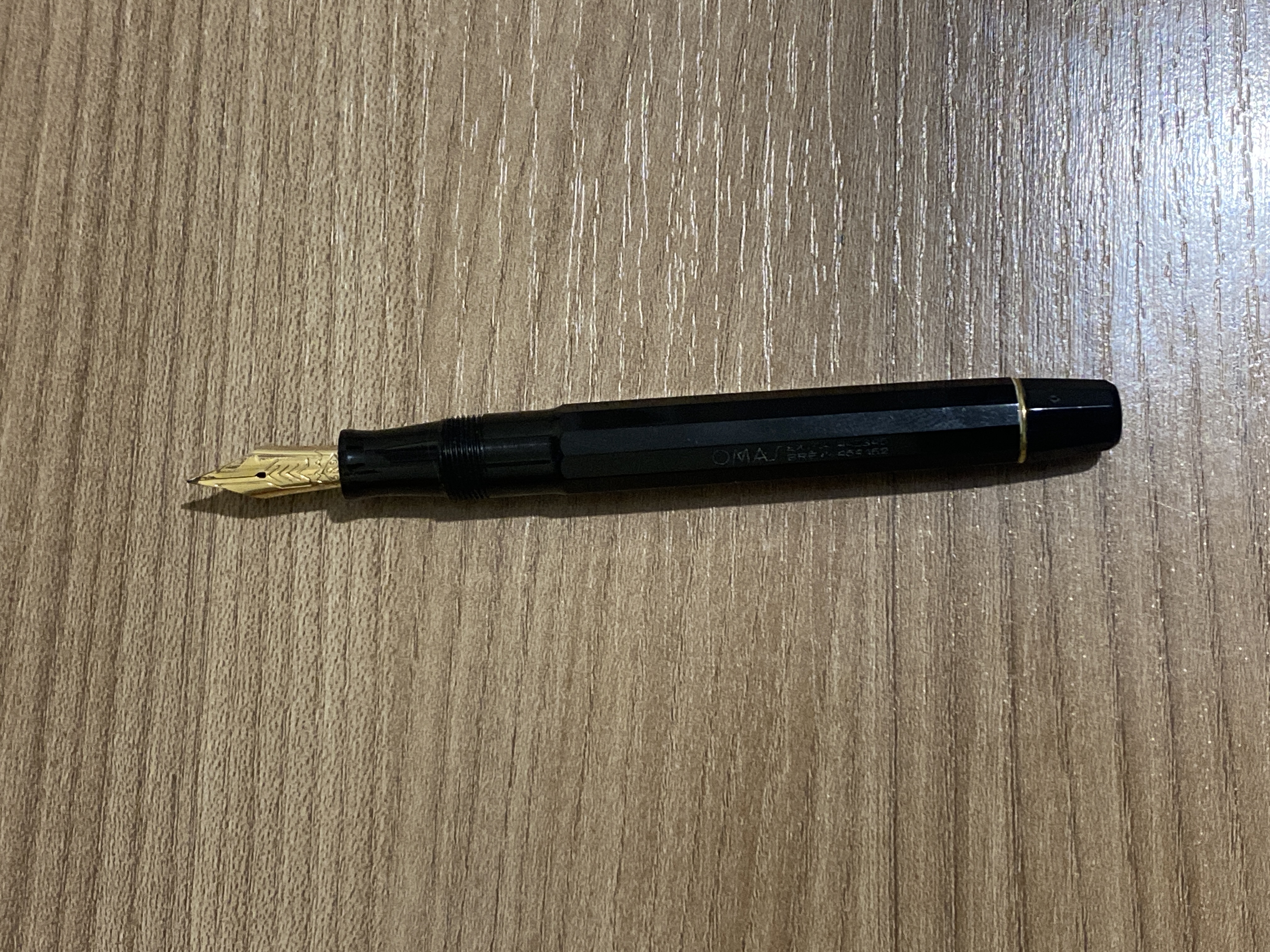 Ho comprato una OMAS Extra al mercatino di Santo Stefano, non sono riuscito a catalogarla, la penna è in celluloide nera marmorizzata grigia, il pennino mi "spiazza" mi sembra appartenere a modelli più recenti, anche se non ho trovato segni particolari di una eventuale sostituzione, la penna è in ottimo stato e sicuramente poco usata. Qualche esperto mi sa aiutare? :)