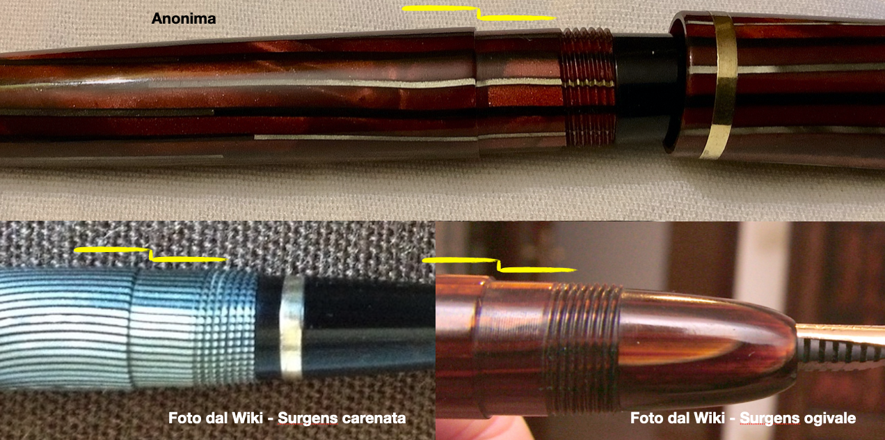 Leggendo una discussione di maxpopp 55 viewtopic.php?p=220612#p220612 , ho notato una certa somiglianza riguardante la celluloide utilizzata per le due stilo, questa anonima e la Surgens indicata nella discussione di cui sopra.