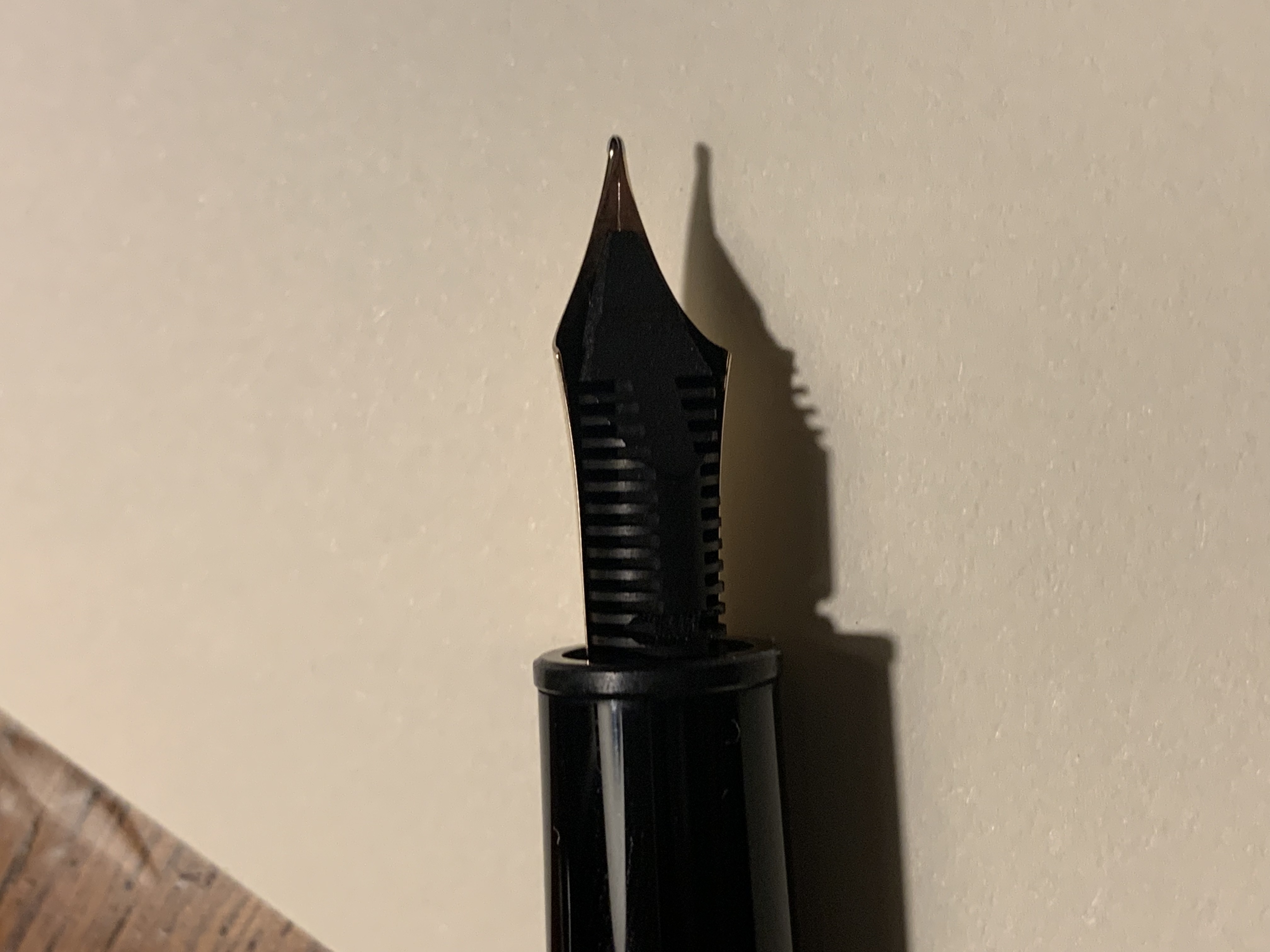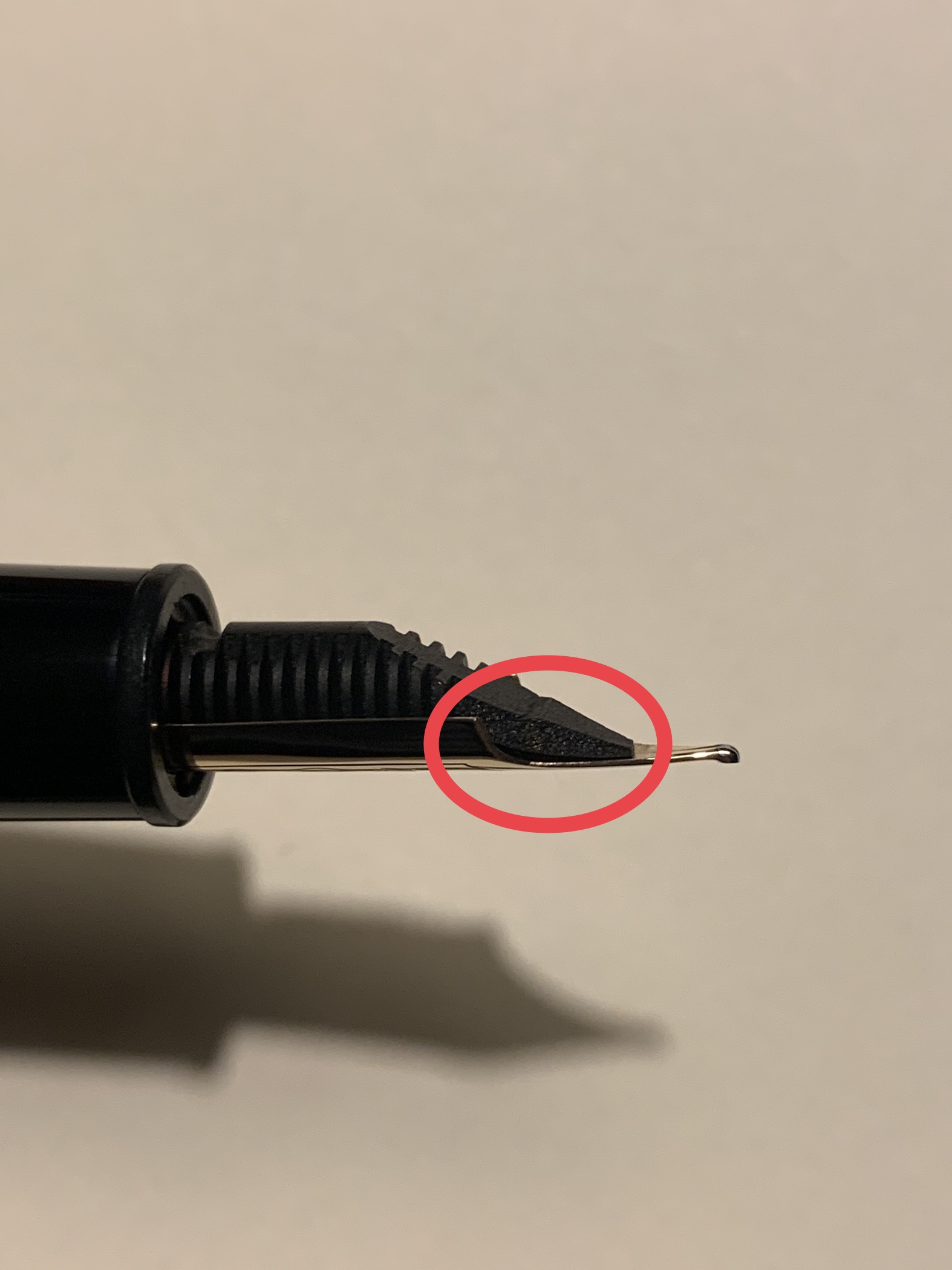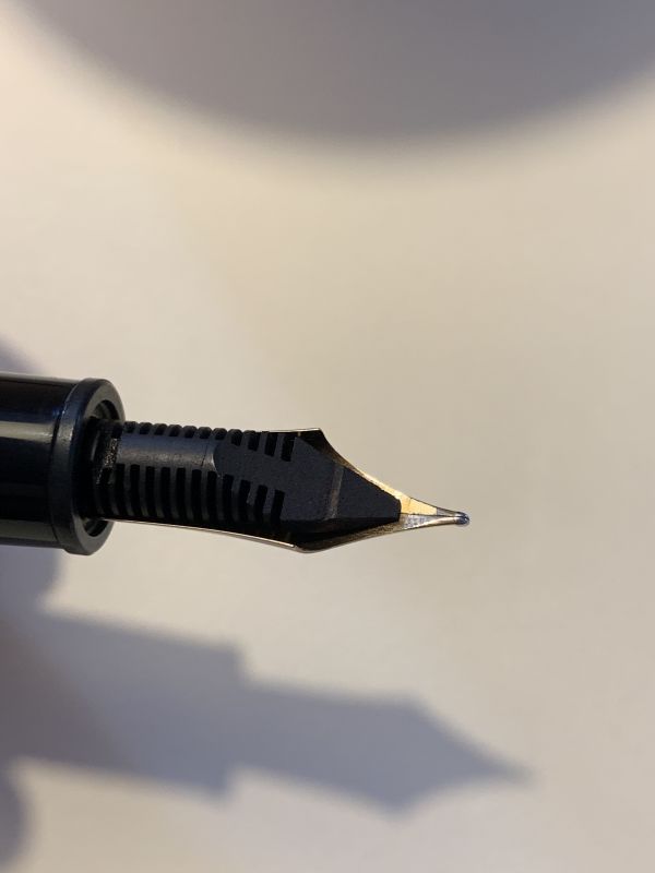 Ho una Montblanc 146 con alimentatore in ebanite di tipo split, un paio di settimane fa, dopo che avevo la penna da solo 7 giorni, l’ho fatta accidentalmente cadere a terra da un’altezza di circa 30 cm. La prima cosa che ho notato, oltre ad un chiazza di Perle Noire sul pavimento