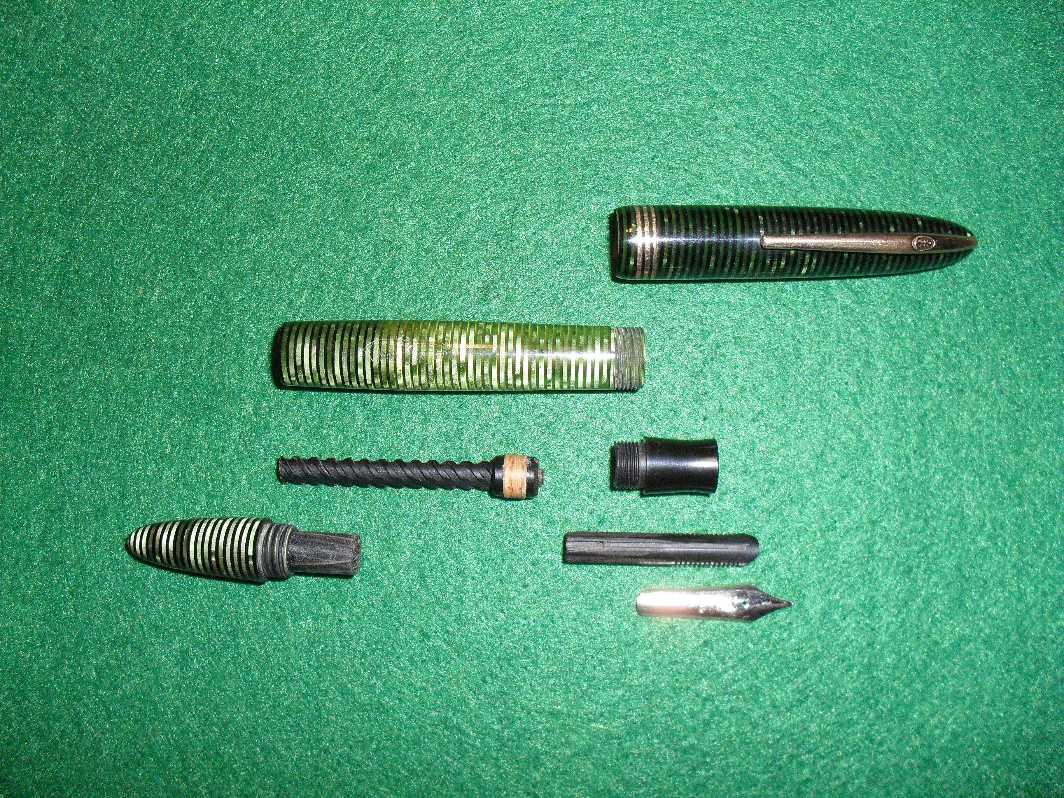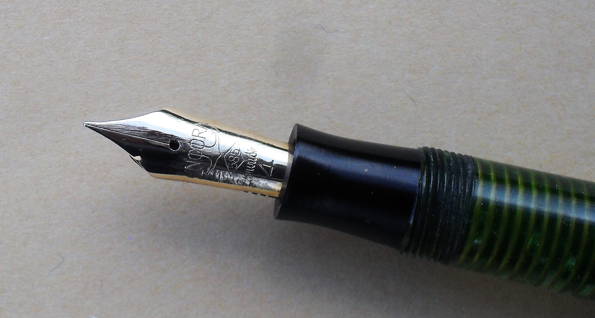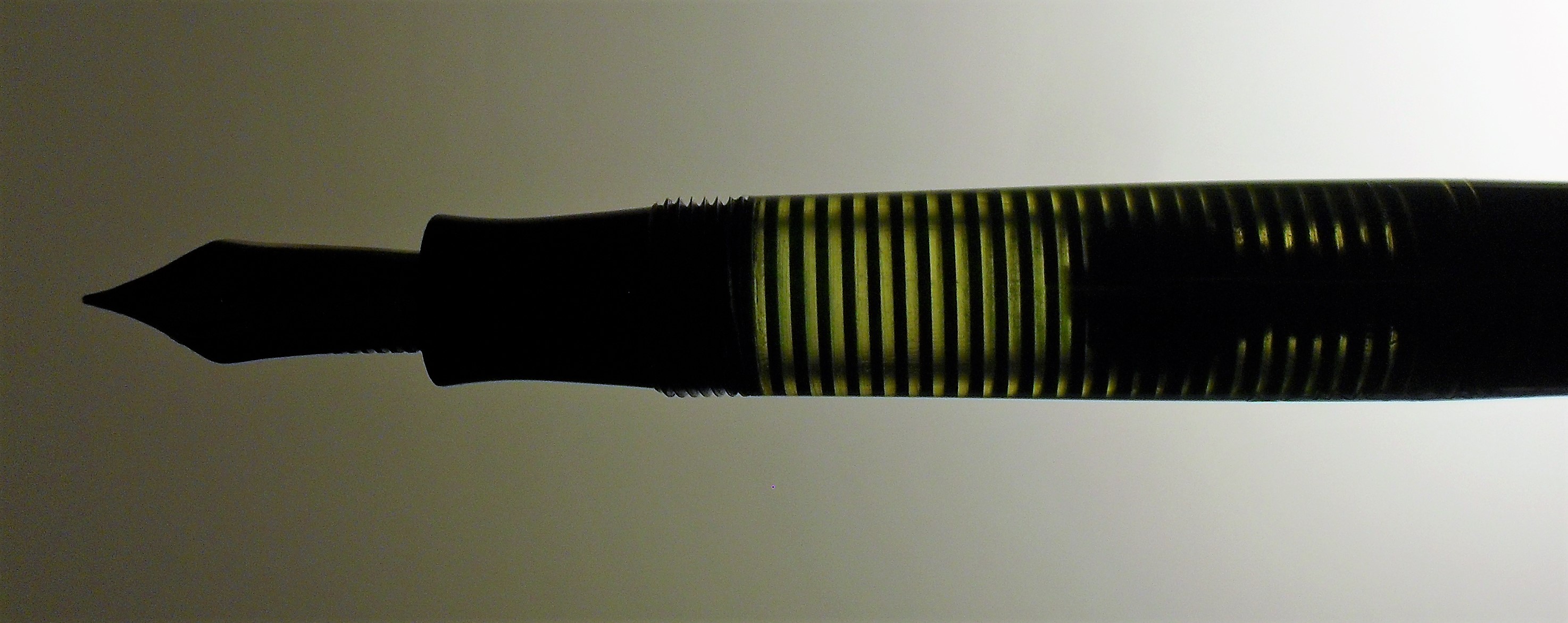 Vi offro alcune fotografie di un'Ancora Lusso, del secondo dopoguerra, in celluloide inanellata verde. Mi è stata regalata qualche settimana fa e, nonostante venga da un fondo di magazzino, mi sembra davvero in buone condizioni.