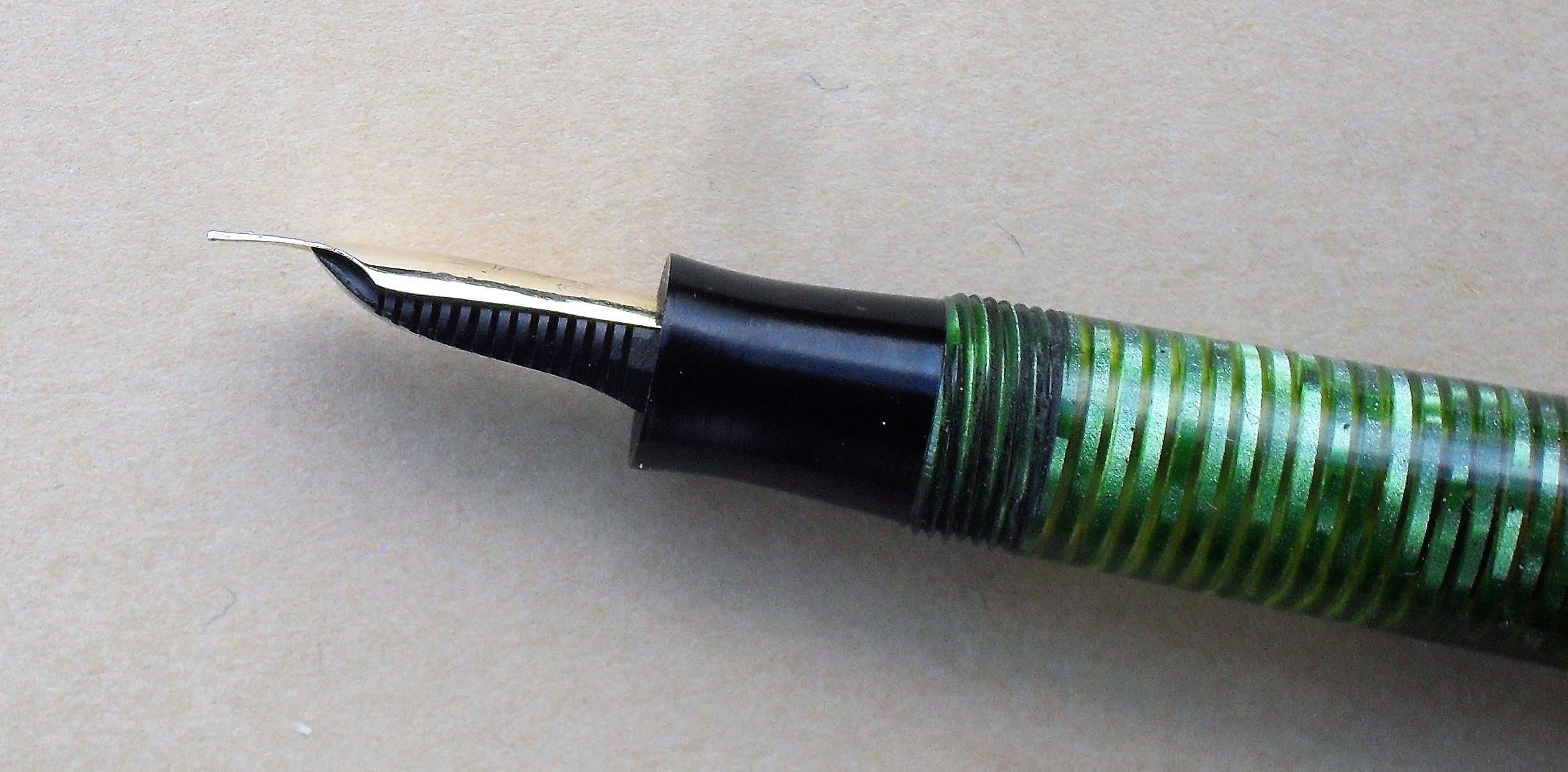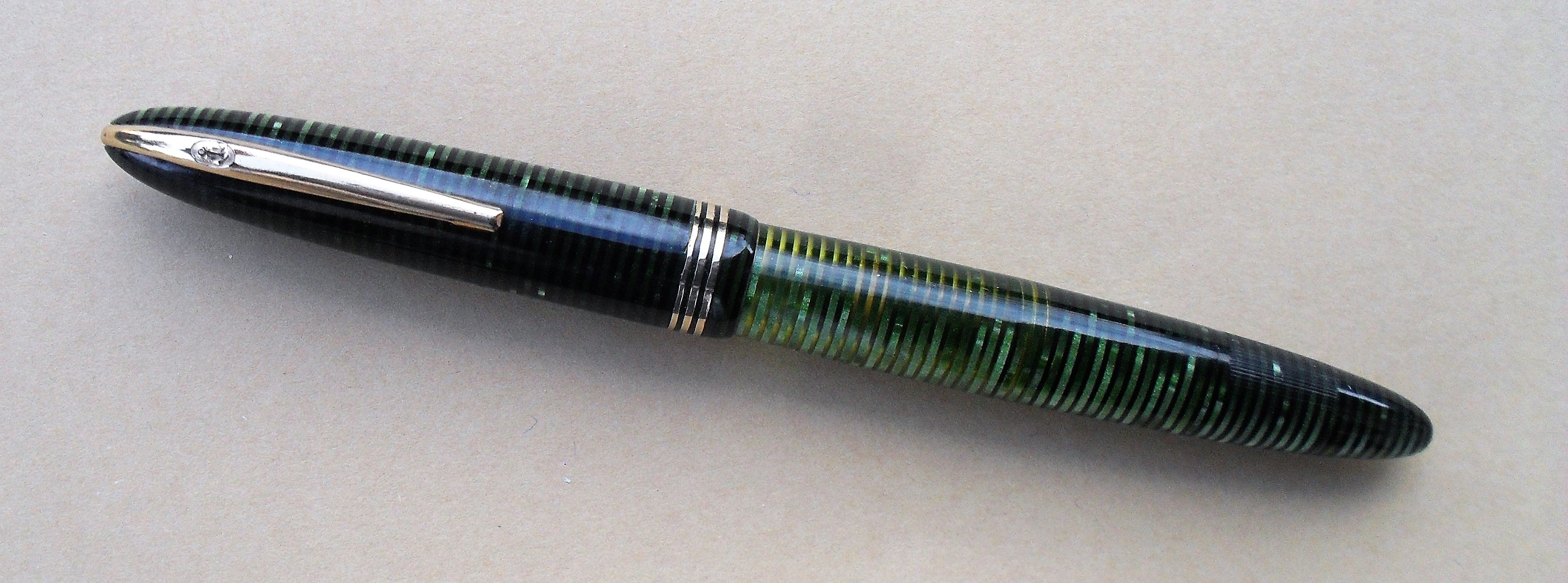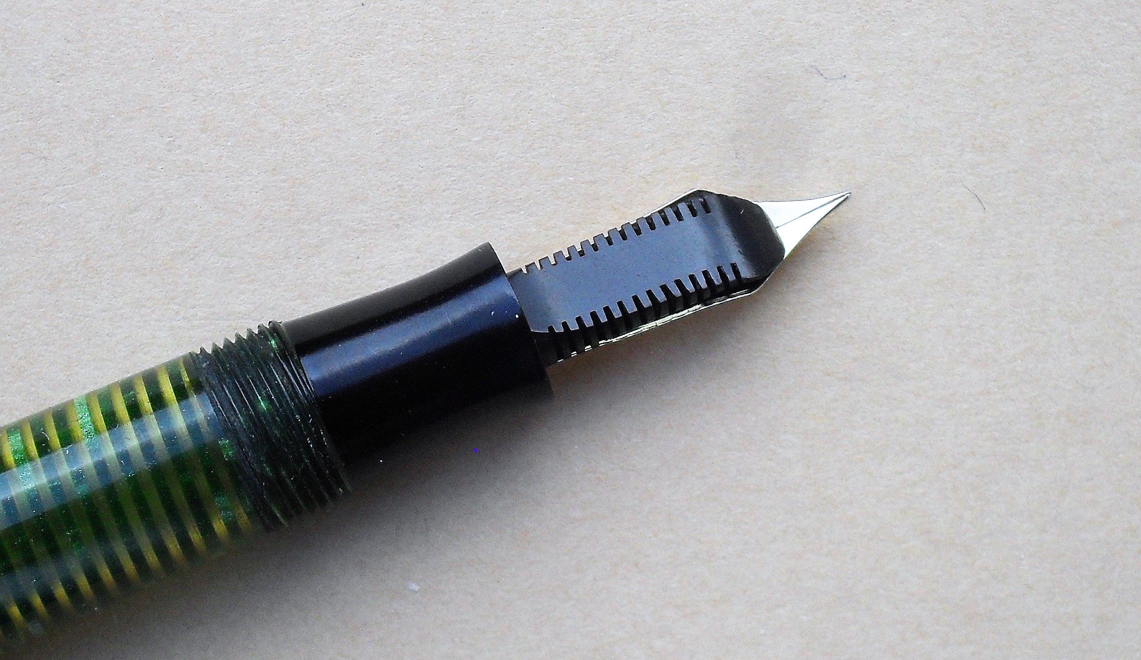 Vi offro alcune fotografie di un'Ancora Lusso, del secondo dopoguerra, in celluloide inanellata verde. Mi è stata regalata qualche settimana fa e, nonostante venga da un fondo di magazzino, mi sembra davvero in buone condizioni.
