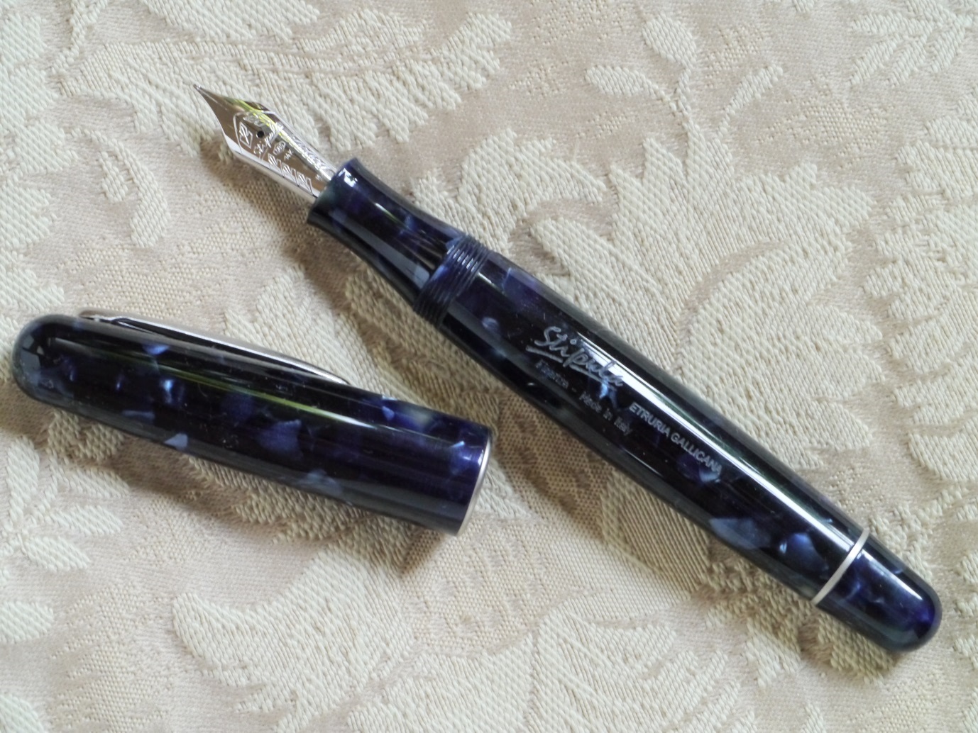 I pennini in acciaio della Etruria sono (o erano fino a di recente) di produzione Bock e sono in minimo più morbidi, quelli della MZ sono Jowo e sono appena più rigidi. La Etruria in resina è una versione economica della originale Etruria che nasce in celluloide. Bella penna comunque anche se a chi possiede una Etruria in celluloide fa un po' l'impressione del "passo indietro".