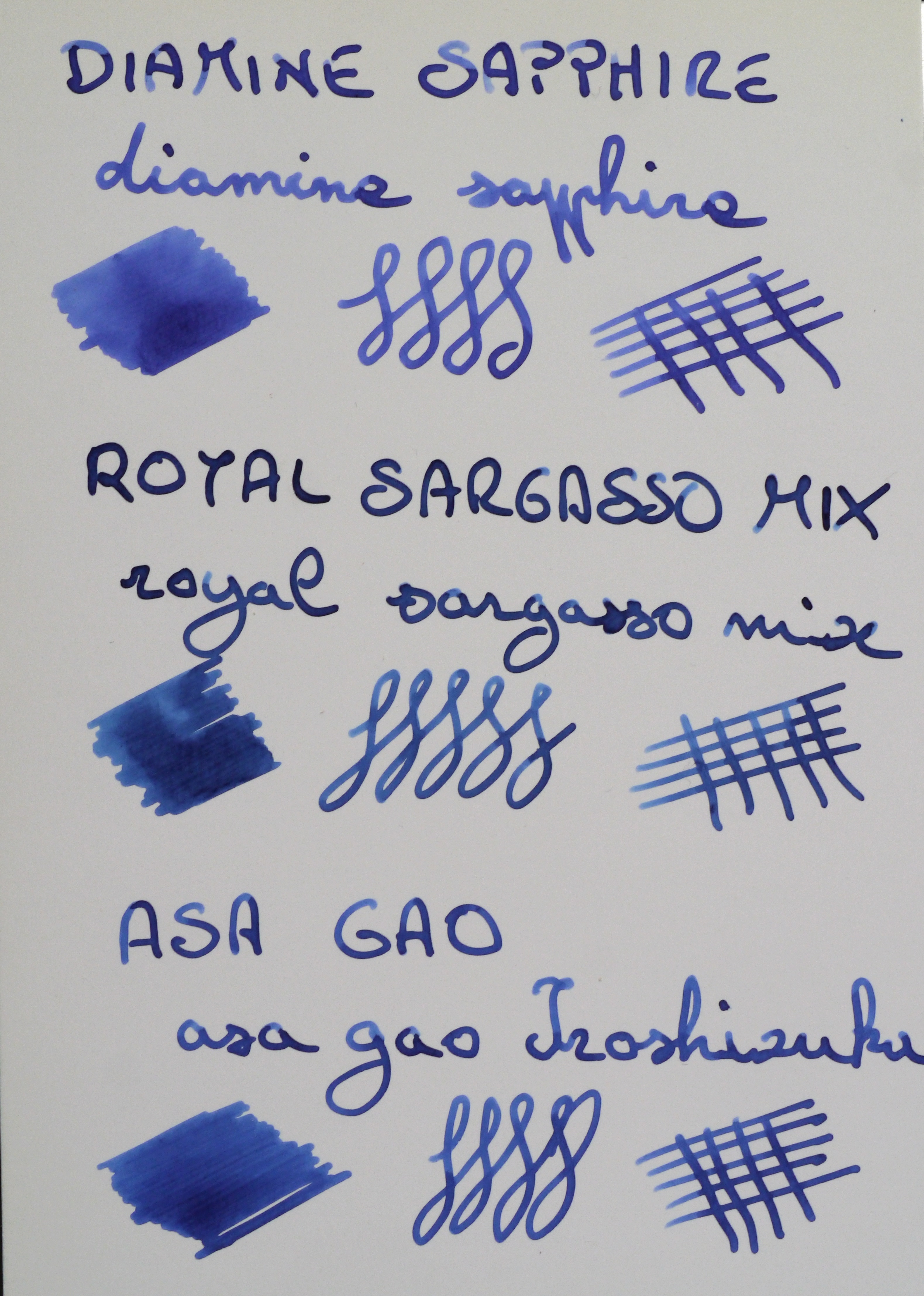 a confronto il risultato finale con Diamine Sapphire e Iroshizuku Asa Gao