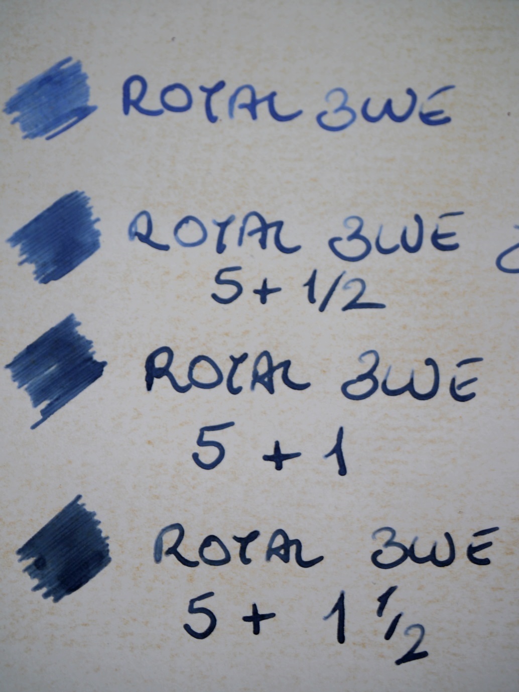 Il Royal blu mi piace, l'ho sempre usato e lo considero un inchiostro base, tuttavia ne ho un po' troppo, e so che tende a sbiadire (anche se dipende molto dalla carta). Ho scoperto che addizionandolo con qualche altro colore lo sbiadimento diminuisce.