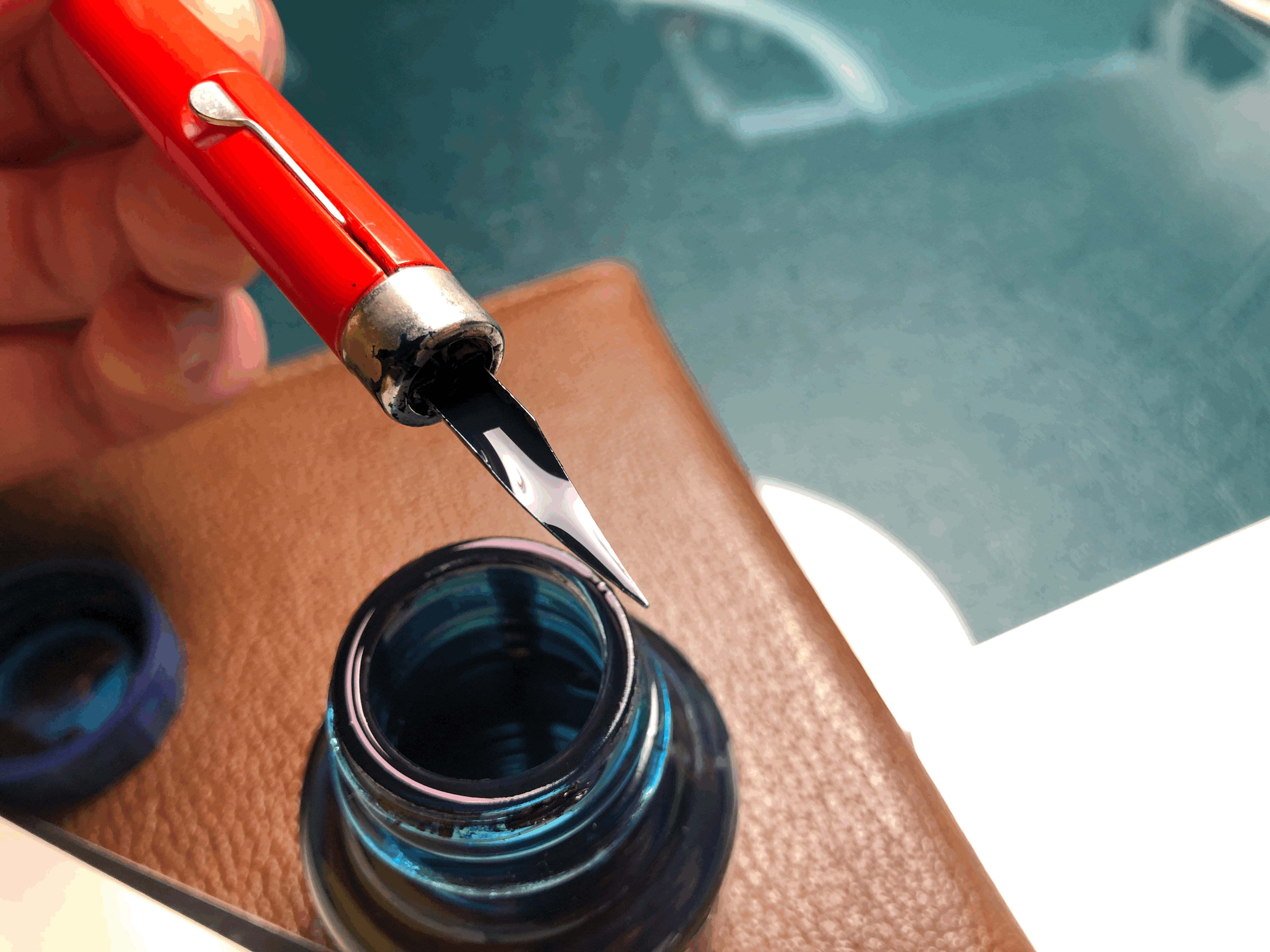 Il produttore, sulle nuove boccette, mi risulta non citi più il possibile uso in stilografica, limitandosi a un più corretto "for brush & dip pens". La presentazione del prodotto sul proprio sito recita "For best results use with a brush or a dip pen.".
