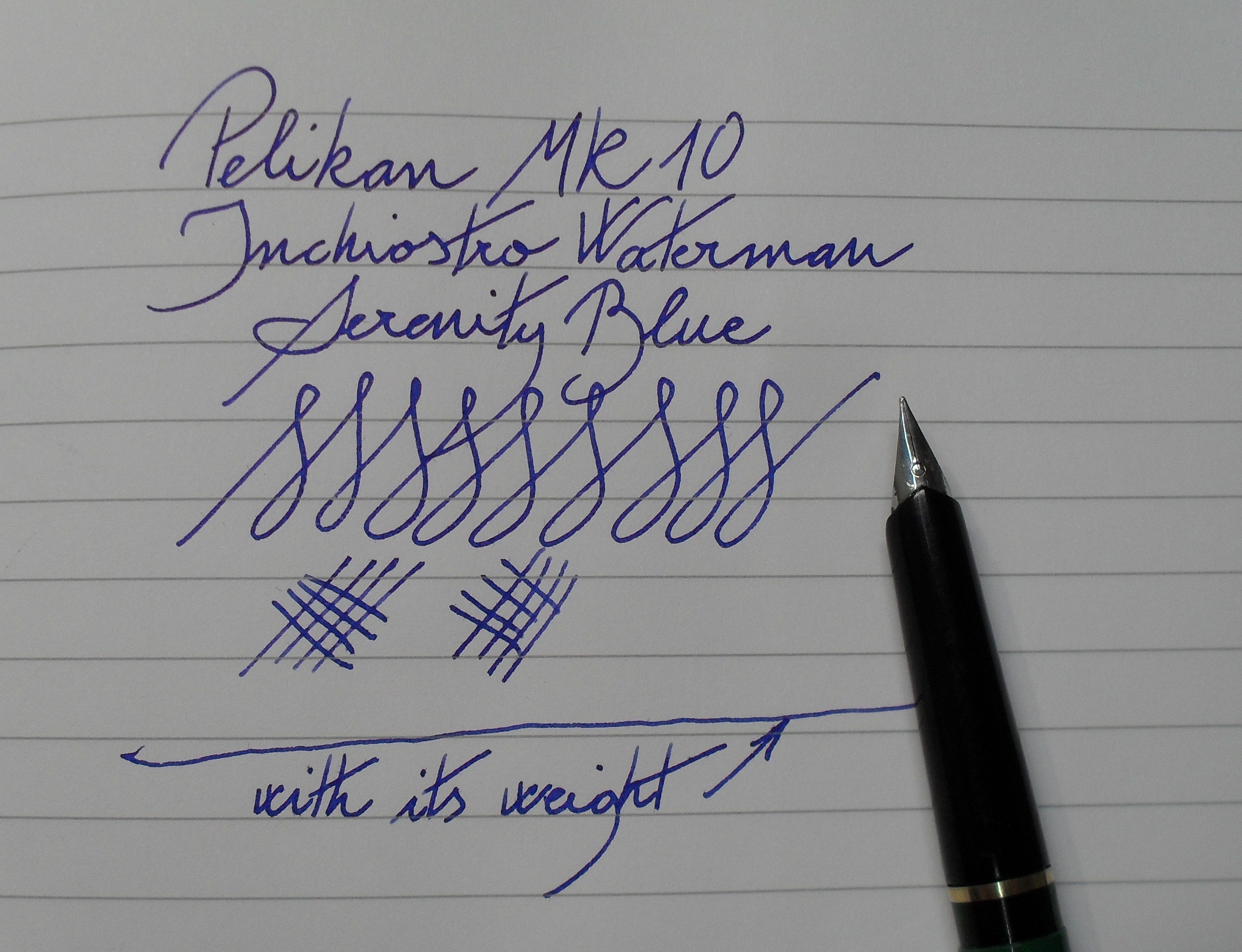Infine, ho caricato uno dei miei inchiostri preferiti, il Waterman Serenity Blue, per una prova di scrittura: Missione compiuta!