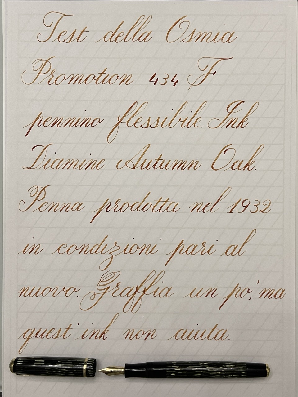 Il venditore tedesco ha parlato di 1932 come anno di produzione. Ho cercato sul wiki, ma non si parla del modello Promotion o 434. La prova di scrittura dimostrava la flessibilità del pennino, quindi anno più o anno meno…