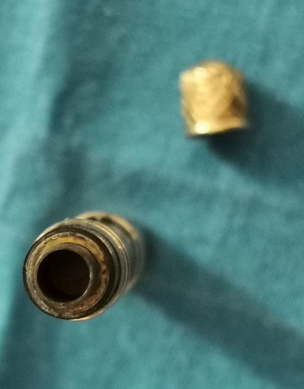 Una delle estremità si svita, si vede il capuccinto svitato in una foto
