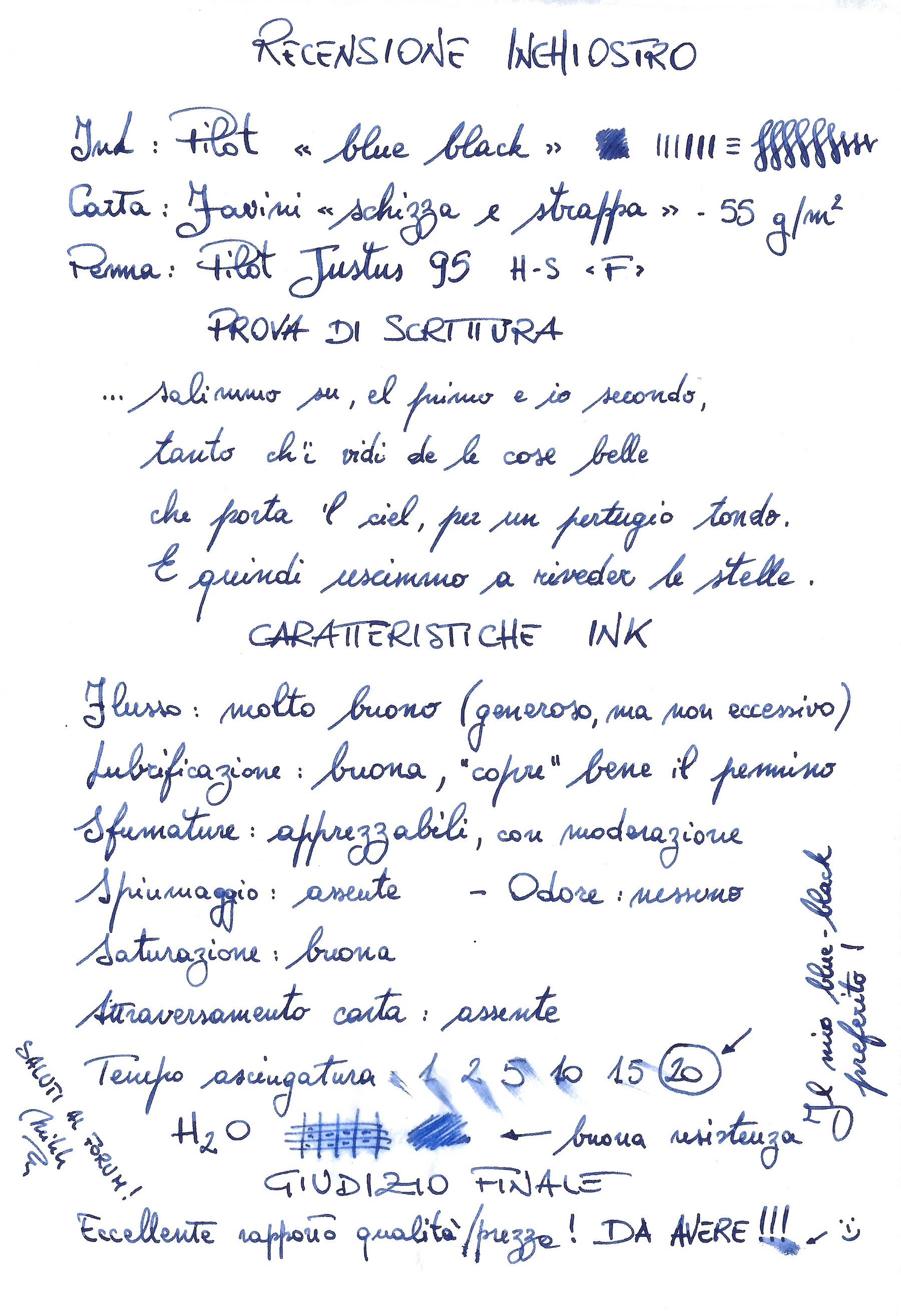 concordo con la tua recensione, un gran bell'inchiostro sotto tutti i punti di vista, un vero amore... ed ha anche un'ottima resistenza all'acqua