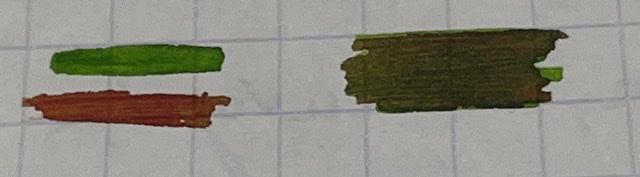 Non hai un arancio da mescolare? Ho fatto un cambio inchiostro una volta senza lavare la penna (ho riempito il converter a siringa), passavo da Kelly Green ad Autumn Oak e la sensazione di marcio è stata forte😅