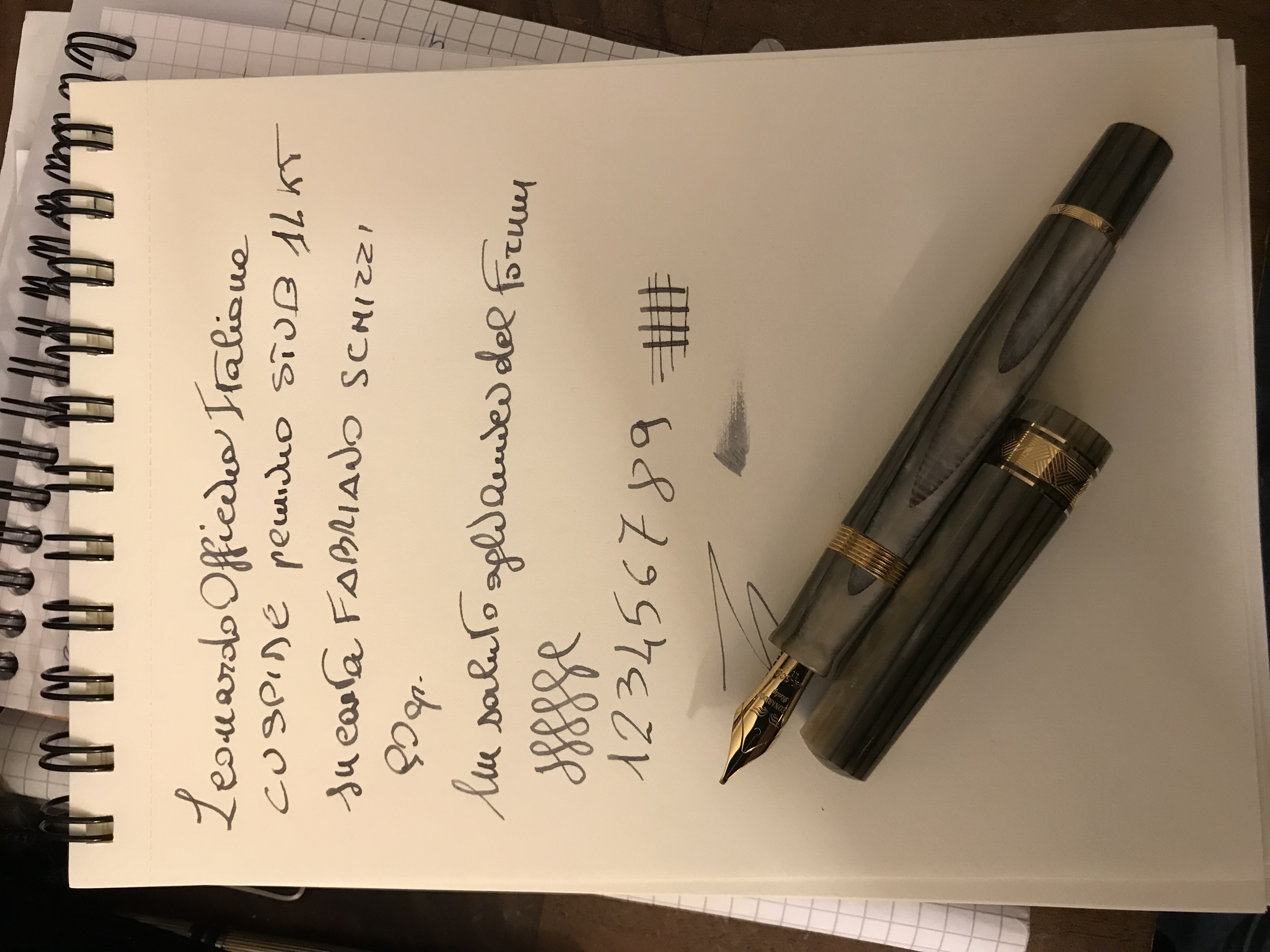 Con un po’ di ritardo allego una prova di scrittura del pennino Stub Leonardo 14kt
