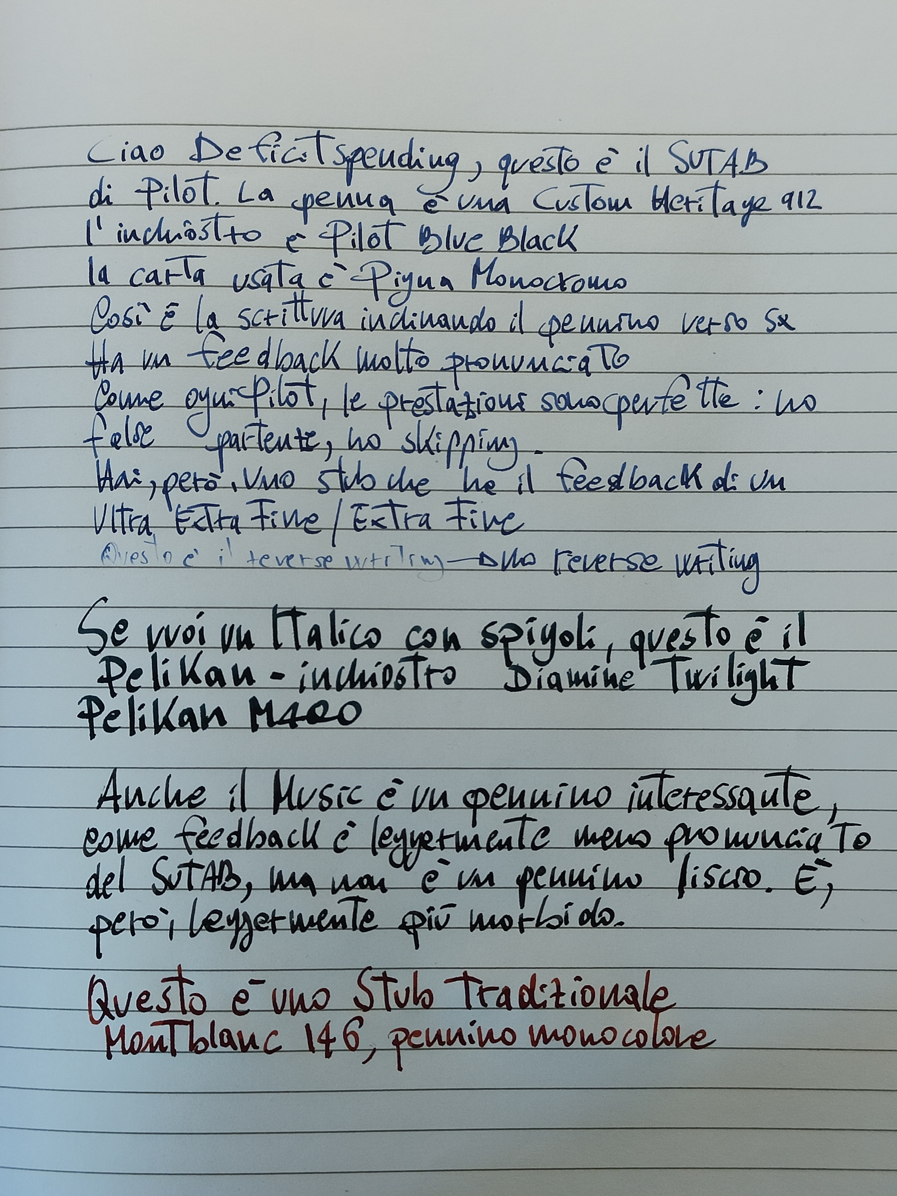 Io ho una Leonardo Cuspide con un pennino stub 14kt ma mi sembra più un italico che uno stub. Ha una posizione di scrittura molto precisa, se vari la inclinazione gratta. Ma il tratto è bellissimo.