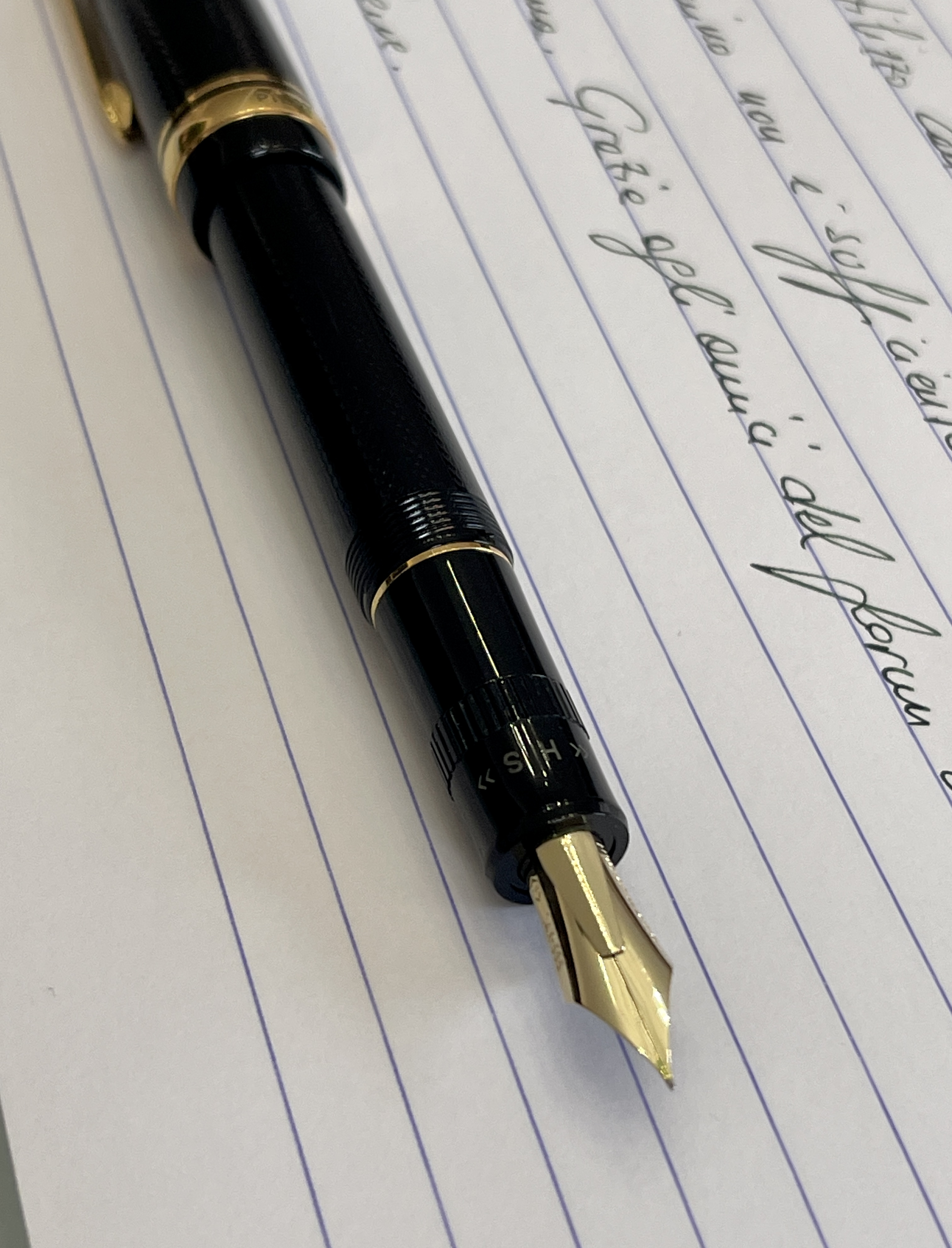 Di fatto è il mio pennino più fine, niente di paragonabile con pennini europei che ho testato. Meno della metà di un EF Pelikan e con meno feedback.