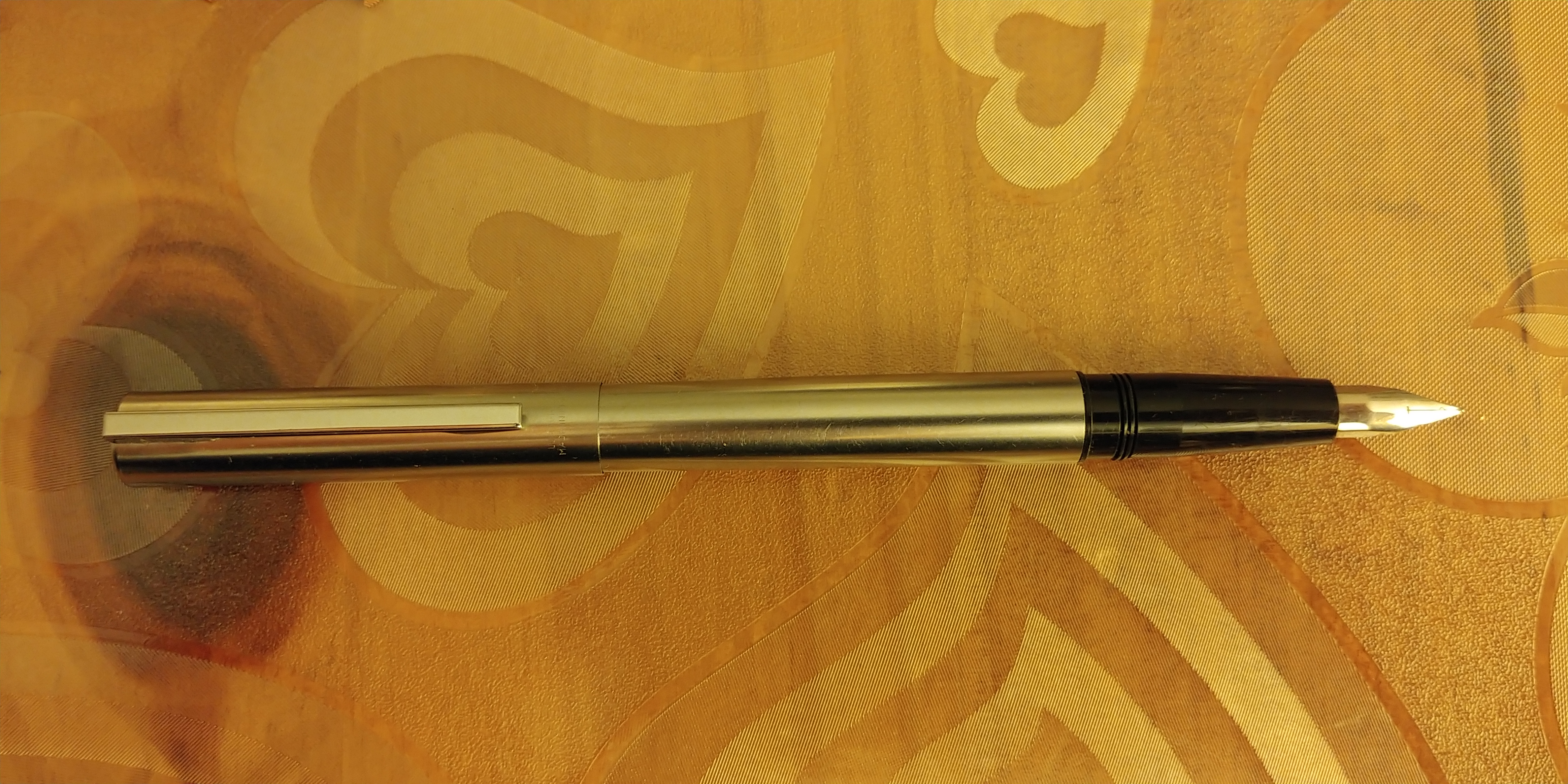 La prima è una Waterman (penso sia una Expert Mk1) con pennino F. La penna sembra nuova e mai inchiostrata. Non era presente nessuna cartuccia né converter. Le cartucce corte pelikan non entrano nel fusto, per cui ho ordinato le waterman. Rimandata quindi la prova ....