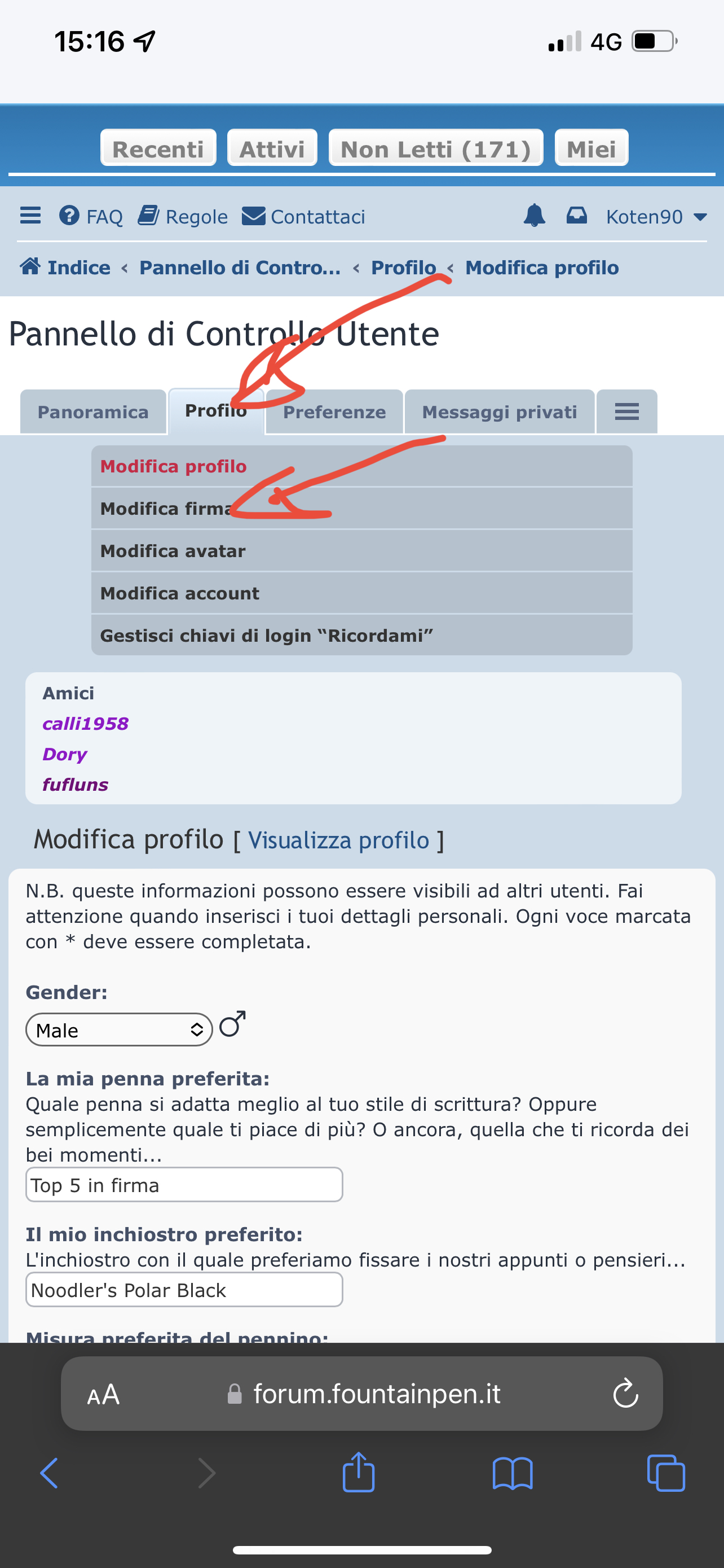 Una volta nel pannello di controllo utente scegli profilo, poi modifica firma