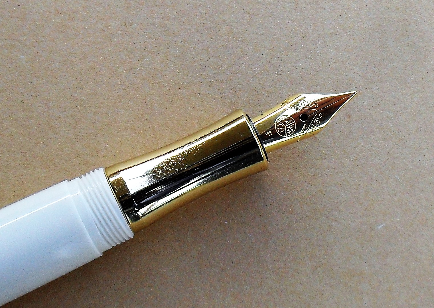 Non ho riscontrato alcun problema durante la scrittura, su alcun tipo di carta, anche la più scadente. Non burroso, il pennino restituisce una sensazione, per me molto piacevole, di presa corretta sulla carta, che consente un controllo completo della punta. Per le mie mani, ed i miei gusti, si tratta di un pennino davvero ottimo. In linea generale, infatti, trovo più maneggevoli e precisi i pennini piccoli.