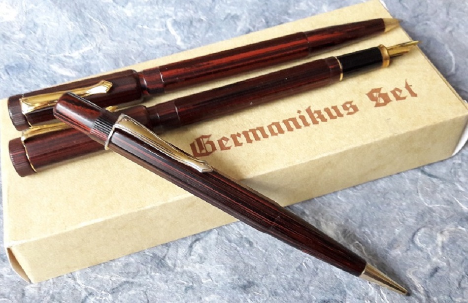 Basandosi su un modello storico, l'azienda "Rou Bill" di Bad Salzuflen, in Germania (stato federale della Nordrhein-Westfalen), ha prodotto nel 1978 un set di scrittura chiamato "Germanikus".