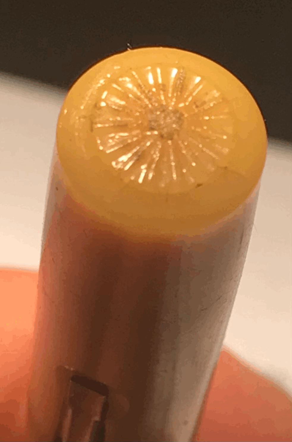 Ciao Esme. Se guardi la seconda foto si vede proprio la depressione e l'assenza della punta di iridio. Come se la punta fosse stata punzonata.