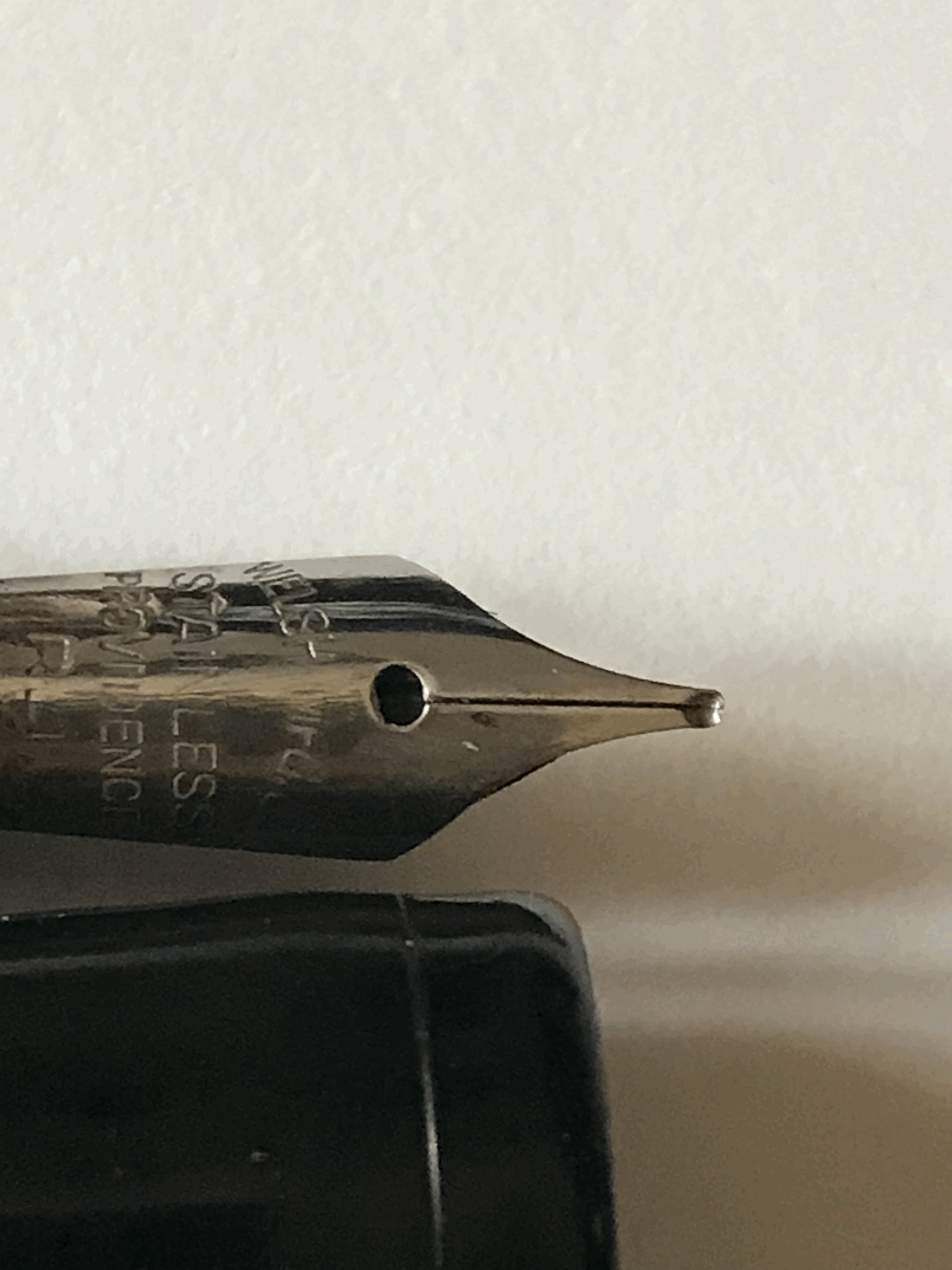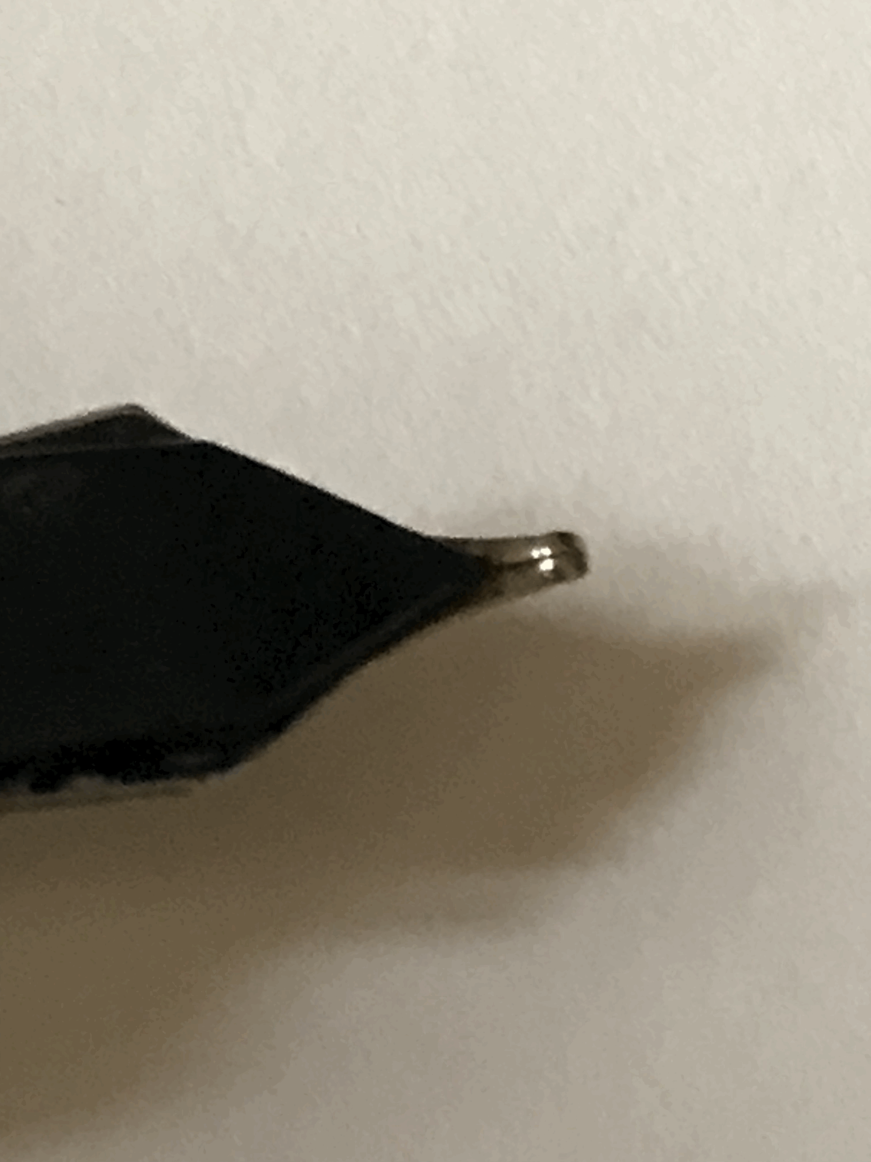 Il pennino mi sembra in ottime condizioni se pur penso di valore irrisorio credo. Dimostrato anche dal fatto che non presenta la classica pallina di iridio alla punta ma solo una lavorazione della punta, che ne permette di ottenere una concavità sulla parte superiore del pennino (parte non scrivente).