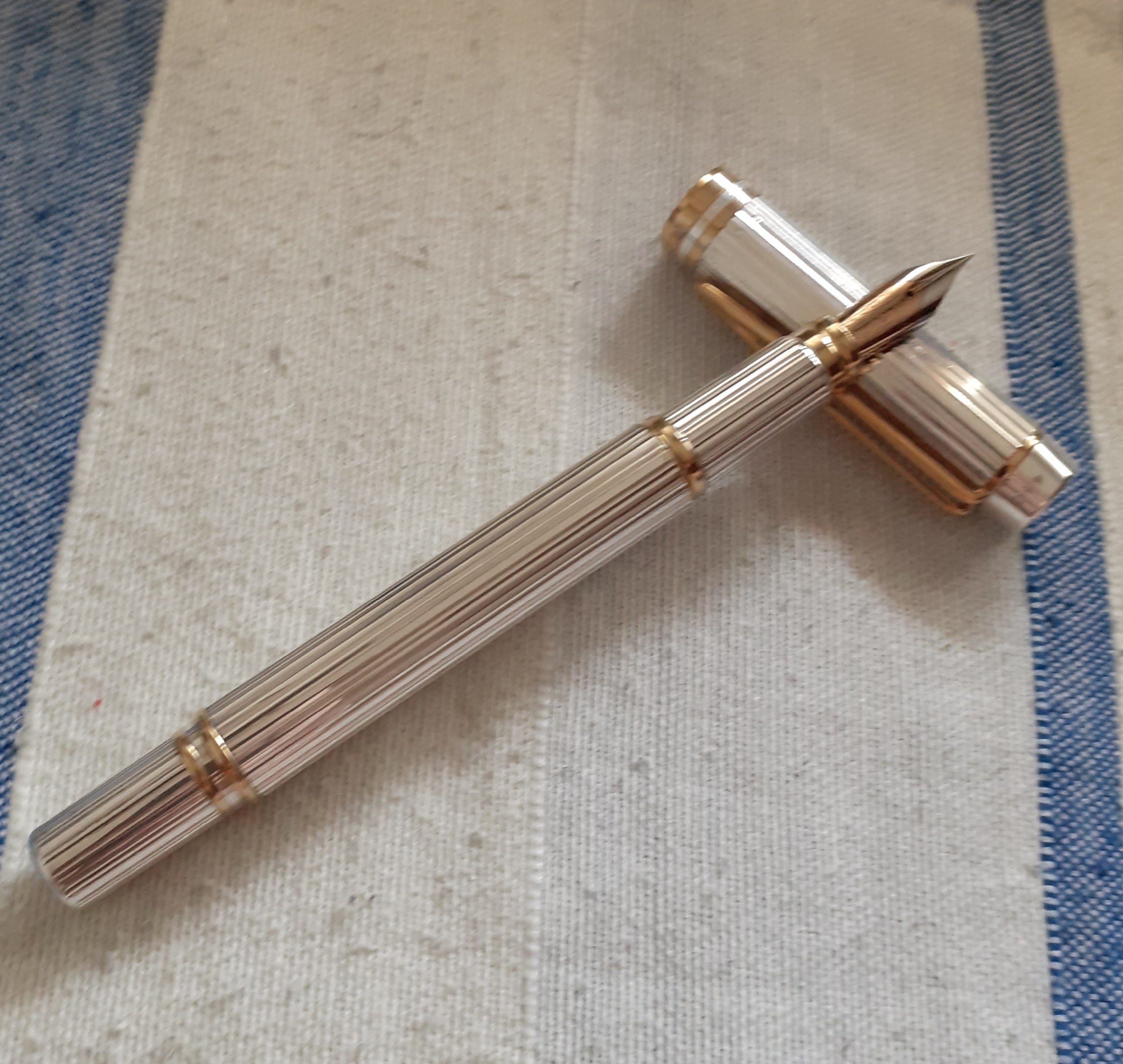 Camminata veloce fra i banchetti del locale mercatino mensile, ho visto brillare qualcosa in una vetrinetta. Ce l'ho già mi son detto e via avanti... poi però.... il fondello è in argento!!!!! Ed eccola qua, man 100 edizione limitata 800 pezzi per il venticinquesimo di waterman Italia