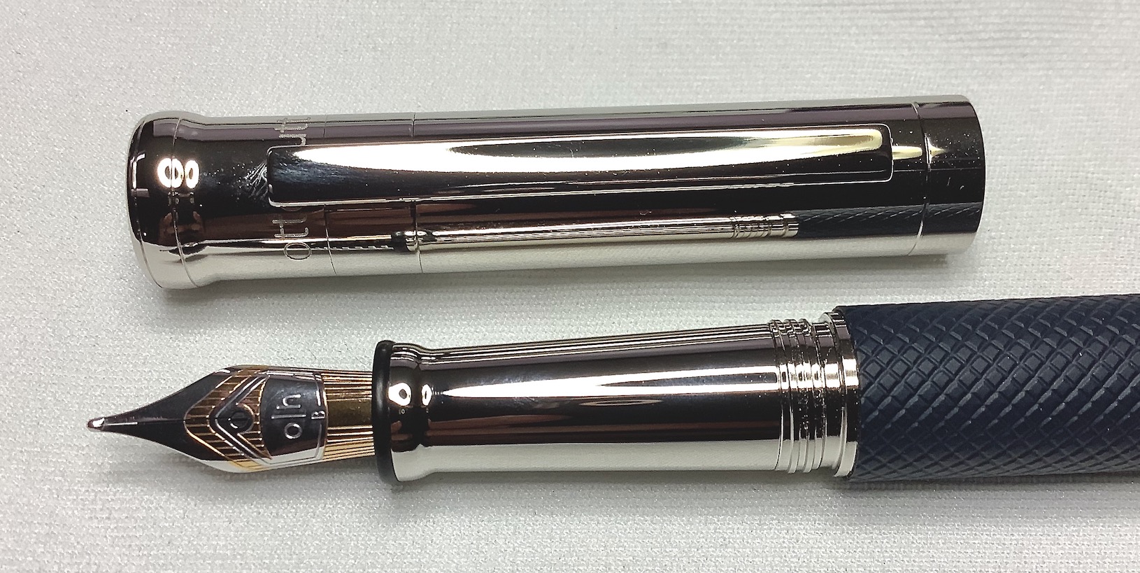Cappuccio e pennino mi ricordano alcune Graf Von Faber Castell, forse si sono ispirate a una comune idea. Il codolo è fatto in quel modo per far calzare bene il cappuccio?