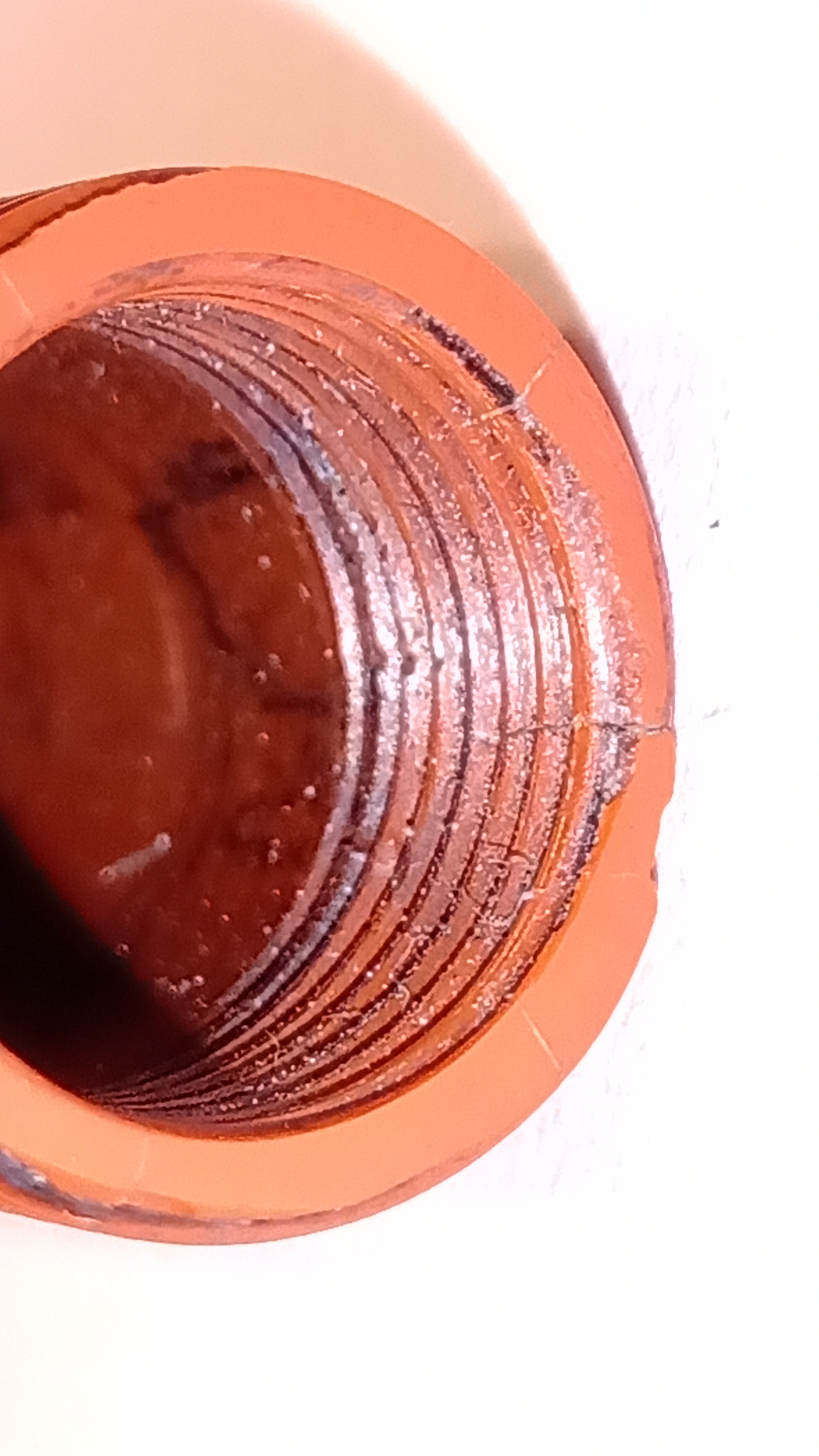 To avoid this again, a brass cup was placed in the grip, where the metal strip anchors, without letting it work as a wedge between the threads...