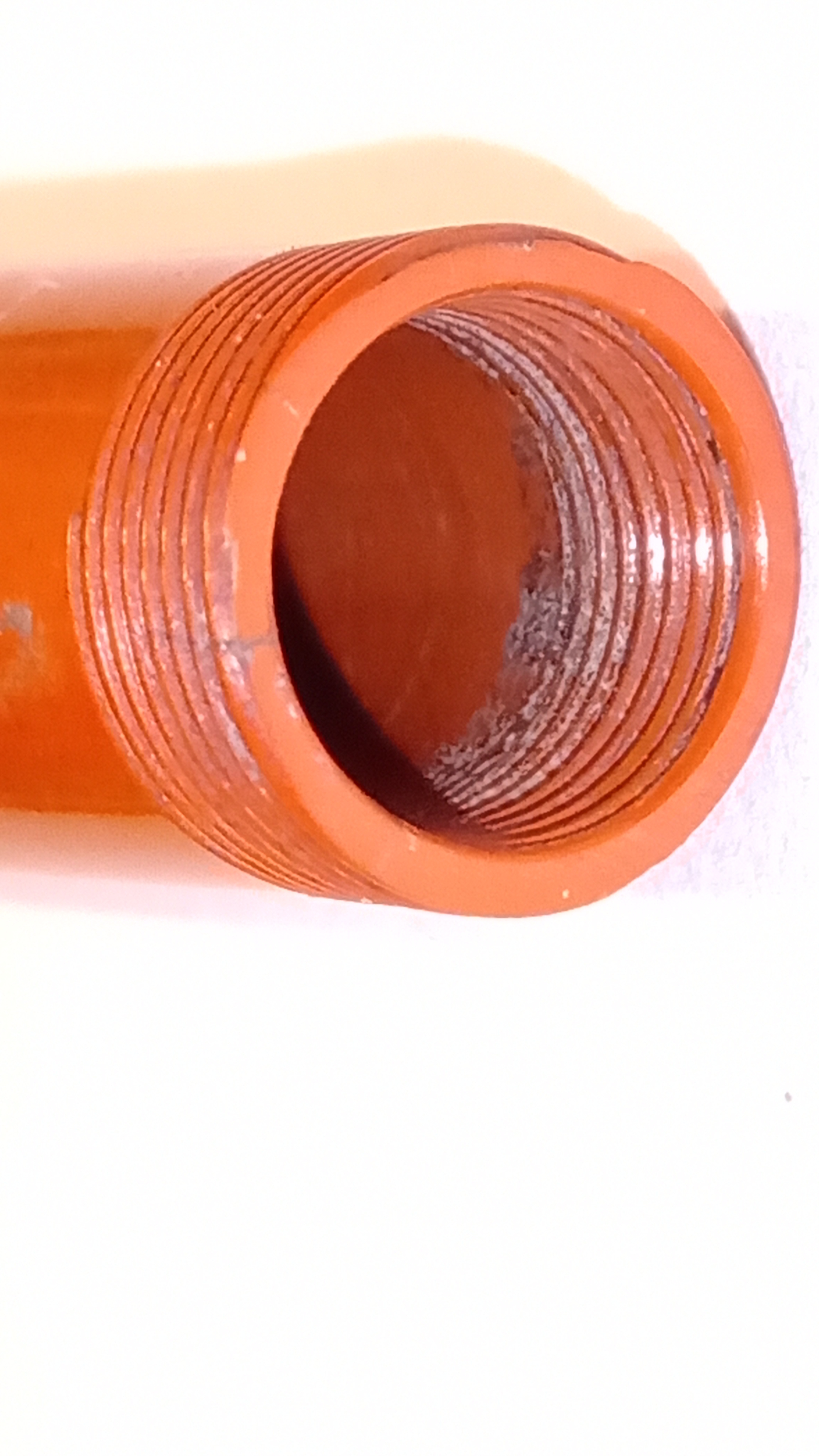 Now, one of the causes of this breakage of the barrel was surely due to the effort that the internal metal strip made when it was "nailed" between the thread of the grip and the thread of the barrel, working as a wedge, and forcing the materials. ..