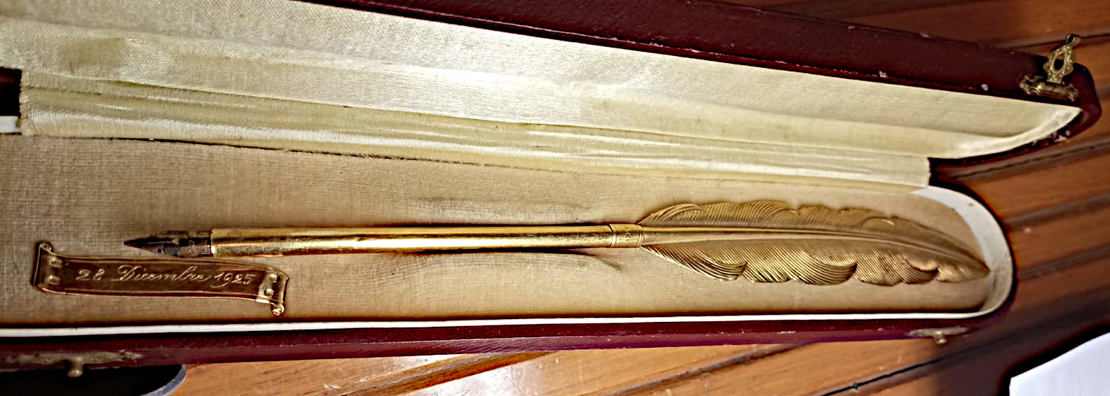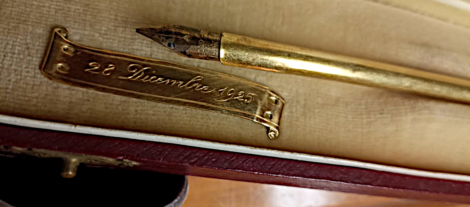E' in un classico cofanetto originale in legno e velluto d'epoca, con tanto di targhetta della data (28 Dicembre 1925), forse un regalo per una ricorrenza.