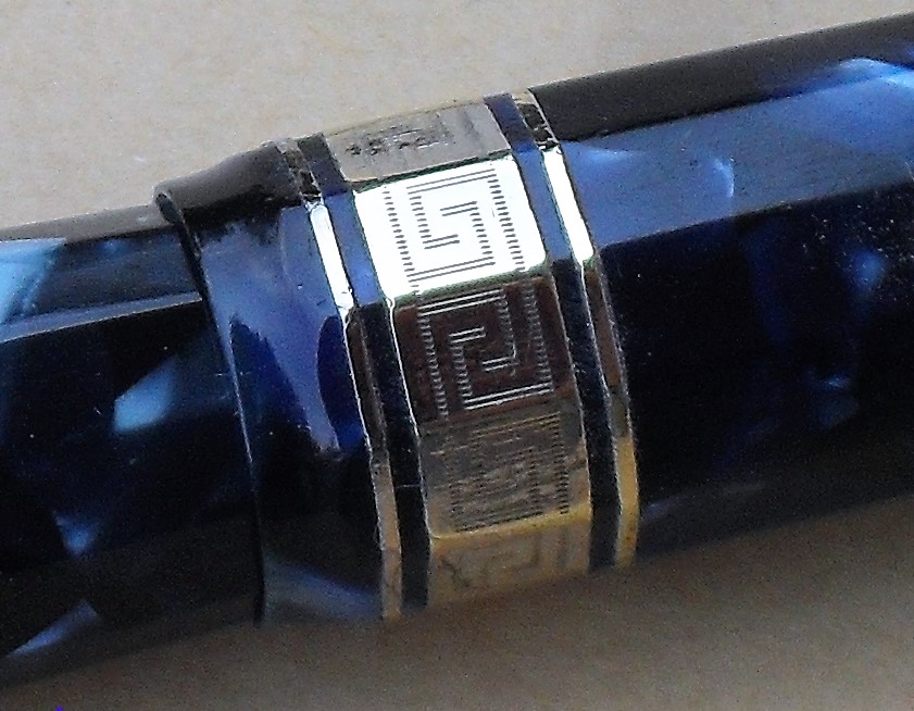 Non del tutto, però; così mi decisi ad inviarla ad un restauratore che conosco bene (si prese cura magistralmente d’una delle mie penne preferite, la Wahl Eversharp Coronet GF - viewtopic.php?f=72&t=20019#p238387 - ), che me l’ha restituita in grado di scrivere benissimo e molto piacevolmente. Il primo aspetto che colpisce di questa stilografica è la bellissima celluloide blu marmorizzata, che anche a distanza di quasi 90 anni mantiene tutta la sua bellezza ed il suo fascino e che cambia leggermente tonalità in condizioni di luce diverse.